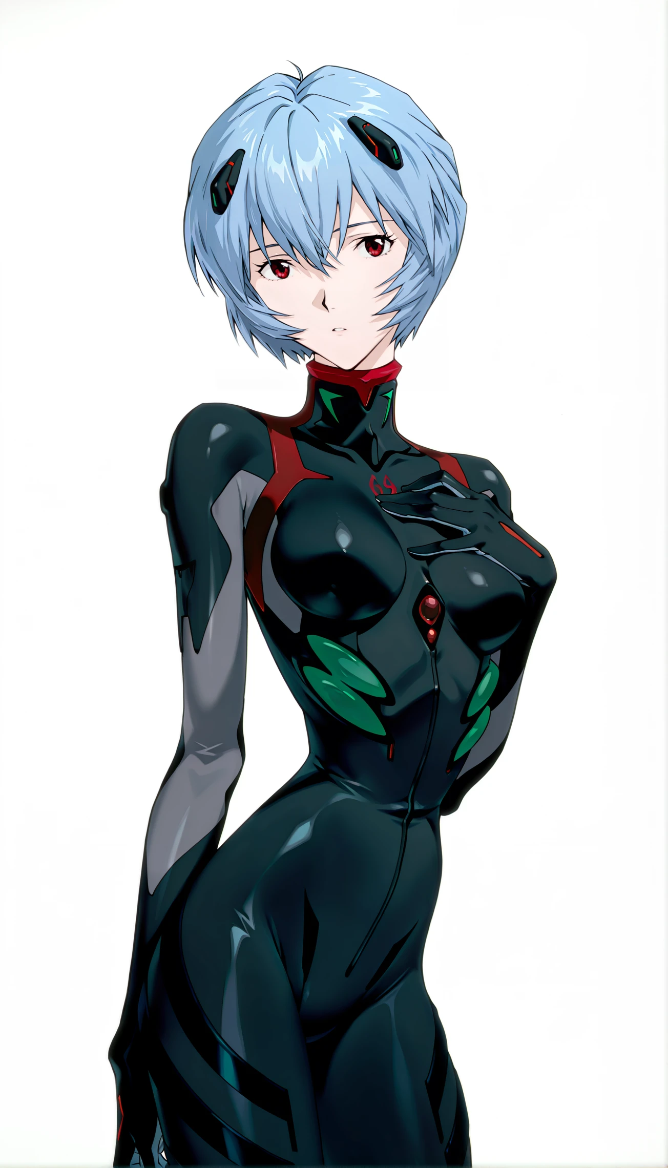 ayanami rei, 1girl, short hair, black bodysuit, plugsuit, pilot suit