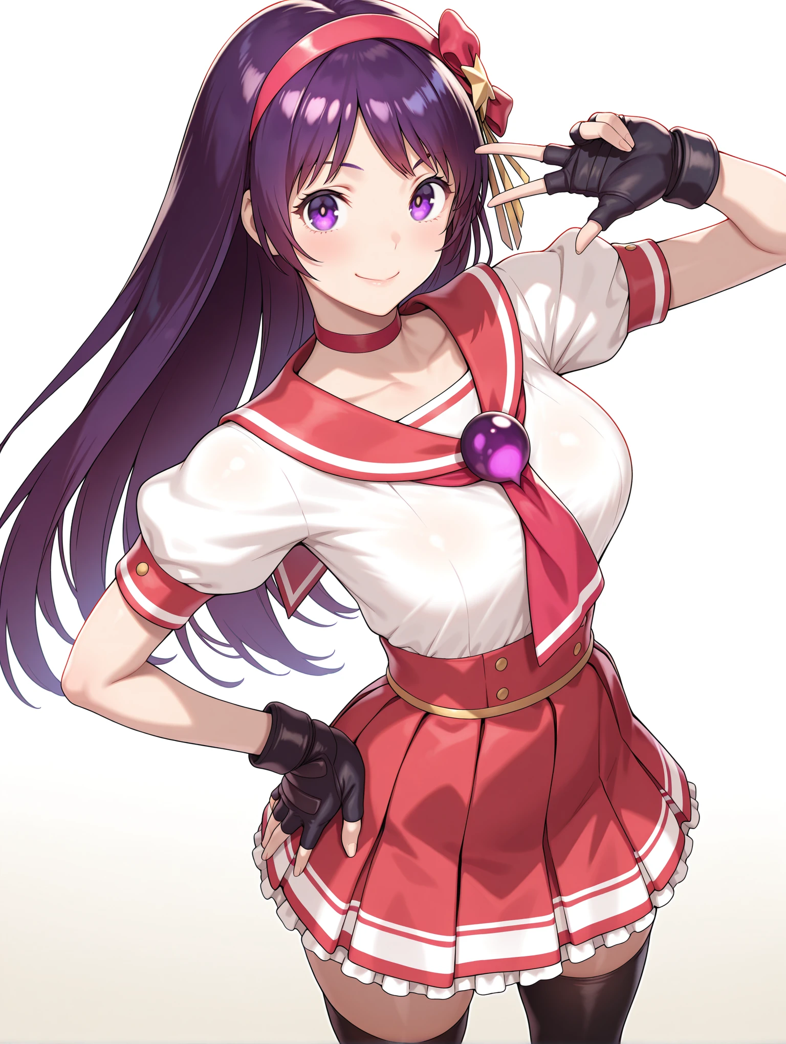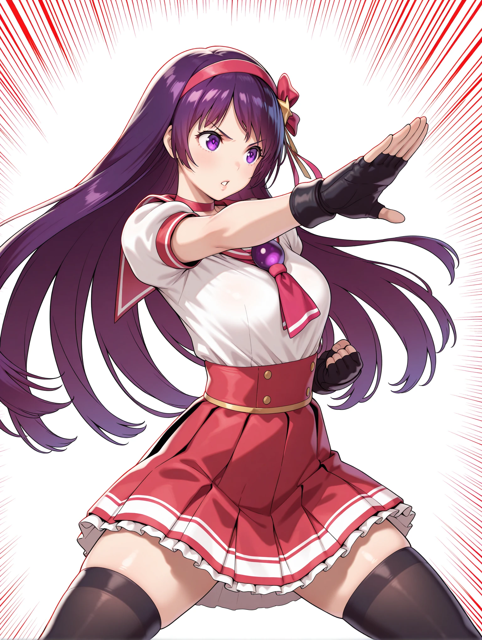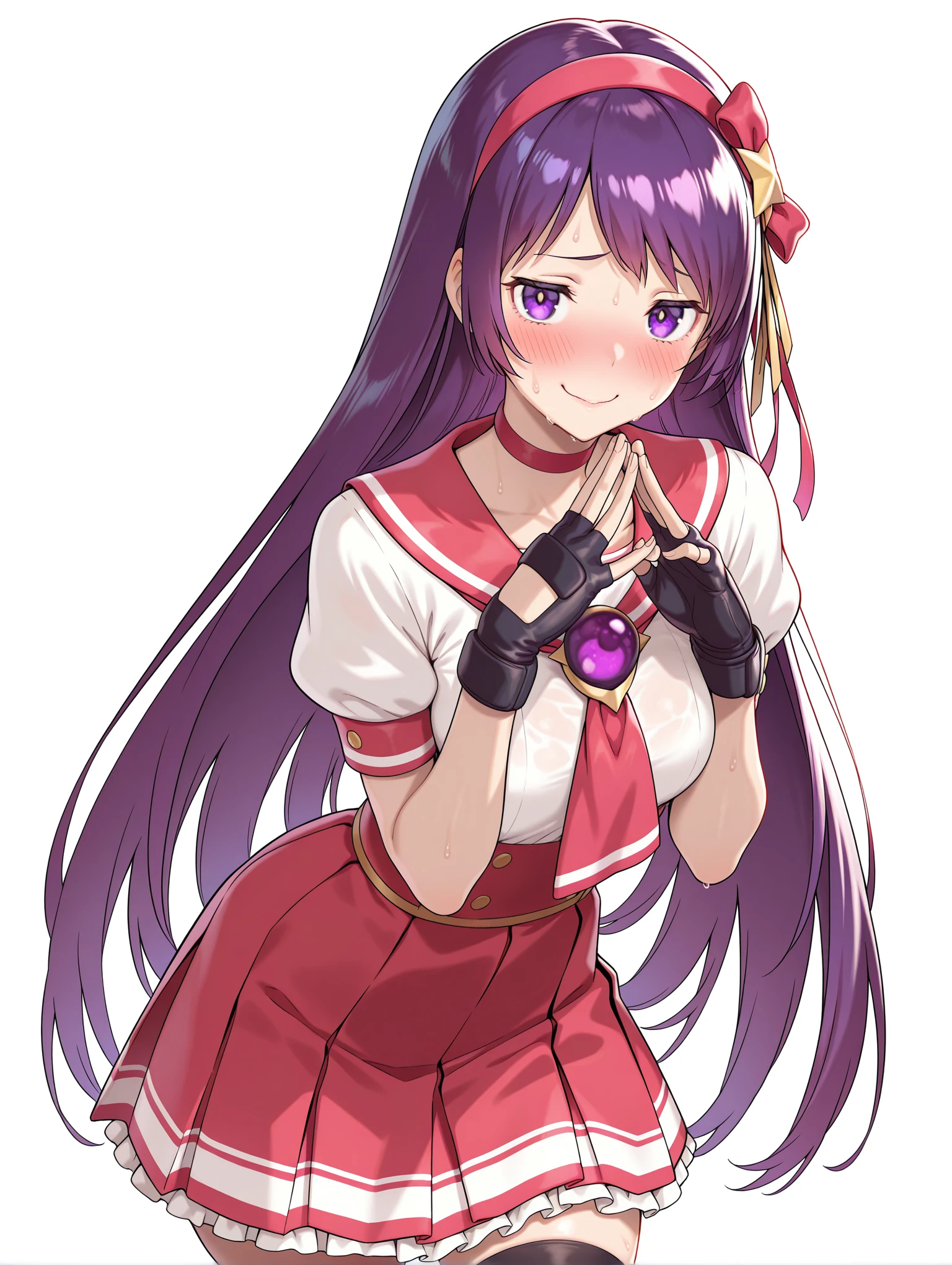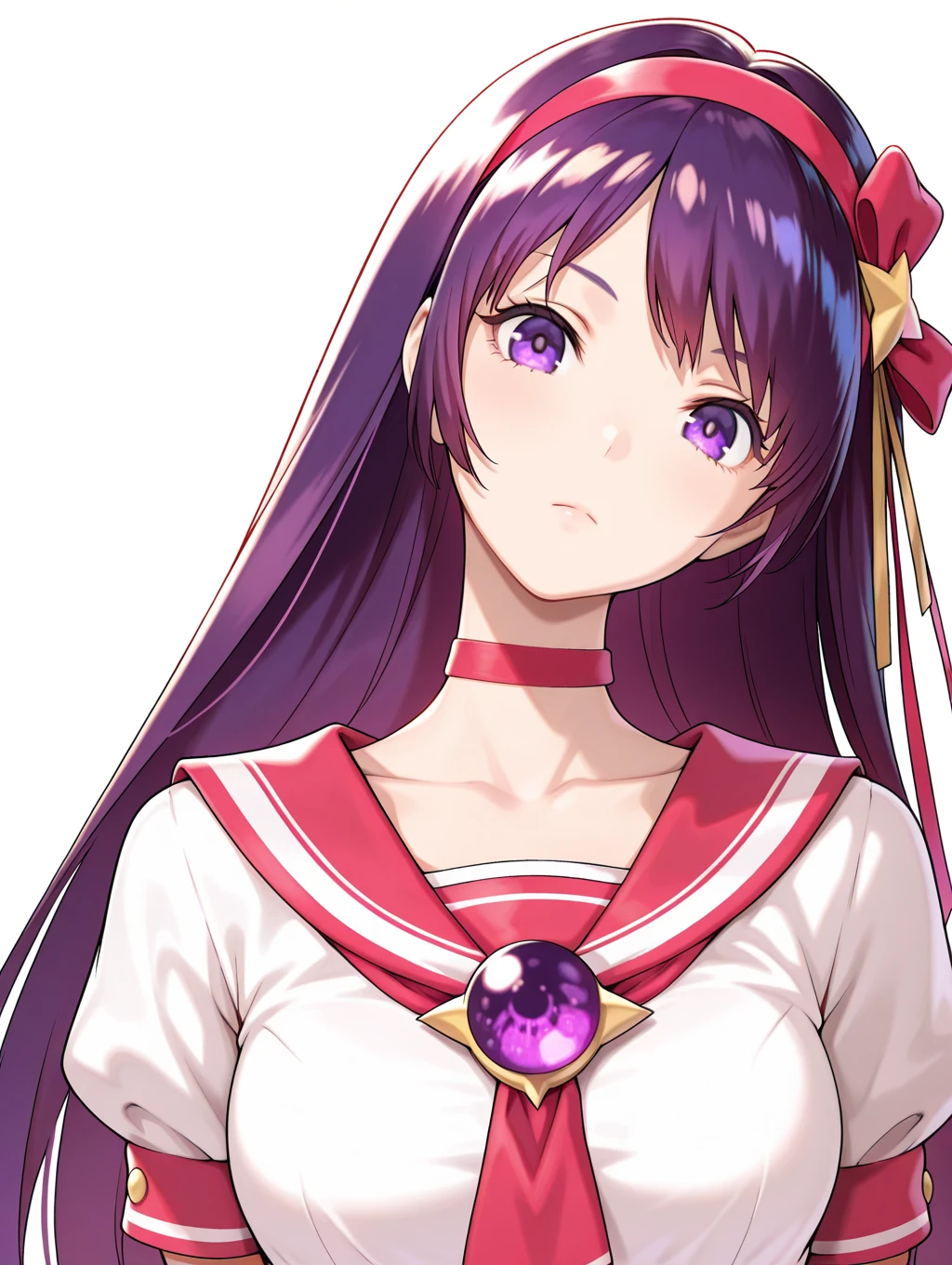 トリガーワード ・a_a,hair ornament,hair ribbon,red hairband,star hair ornament,purple hair,purple eyes,long hair,