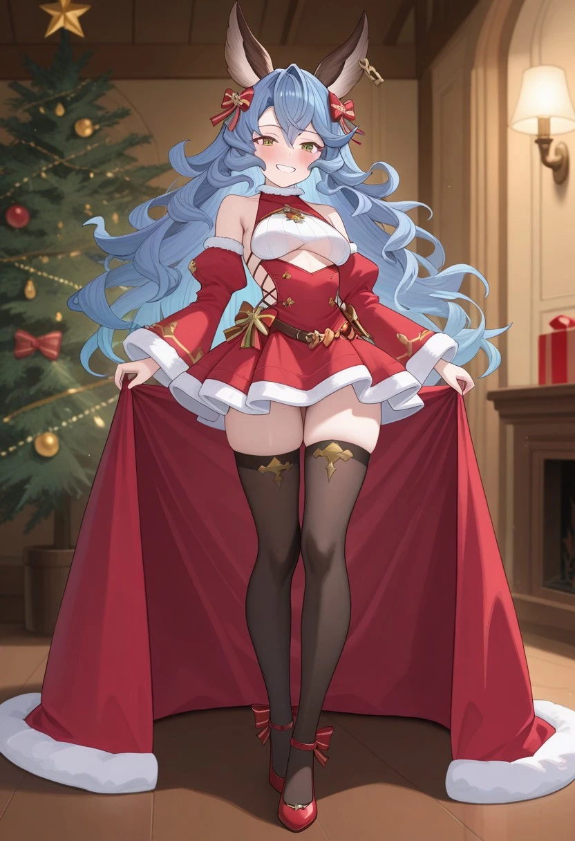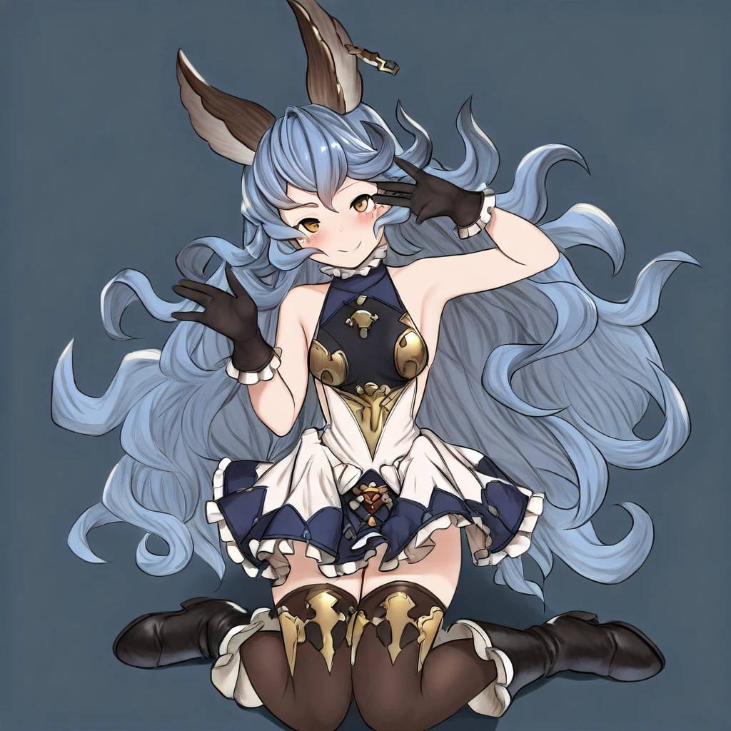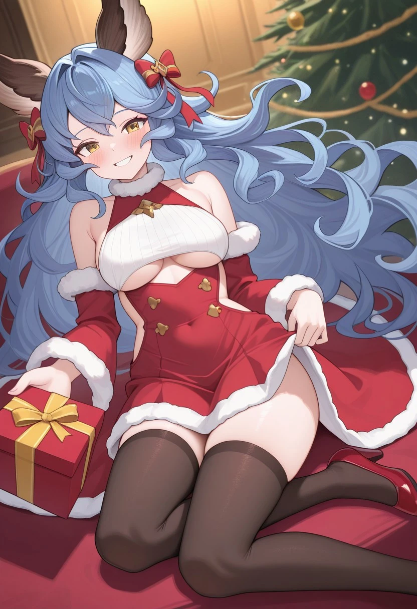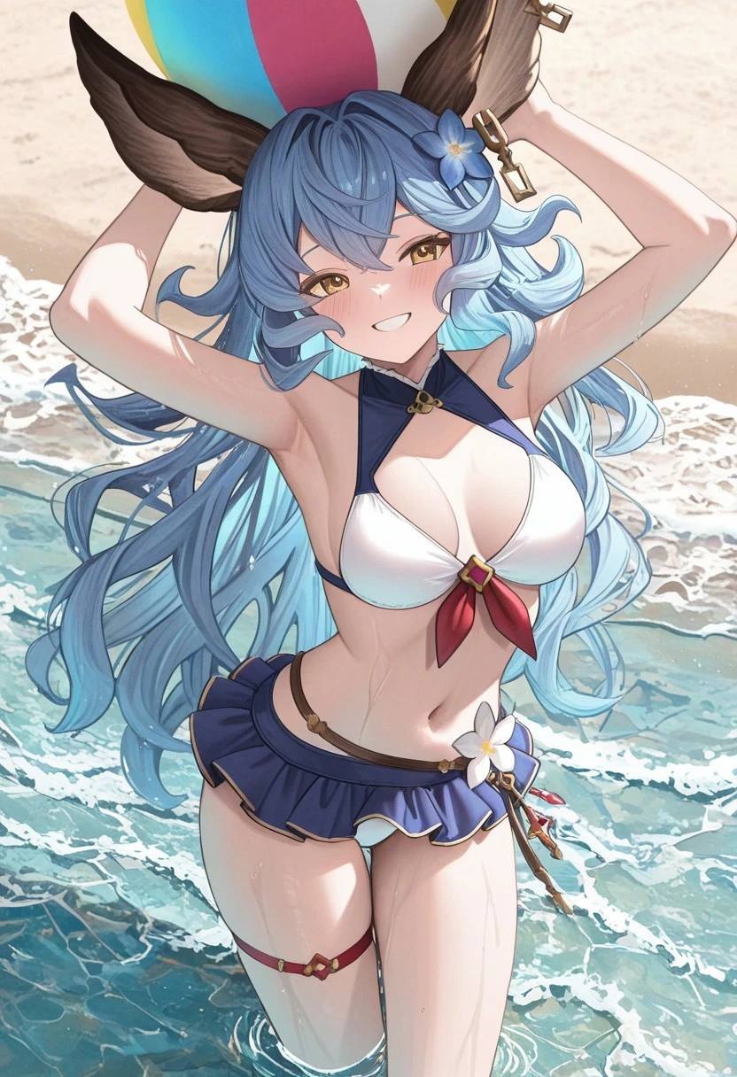 LoveUFerry, yellow eyes, erune animal ears, long wavy hair, blue hair,