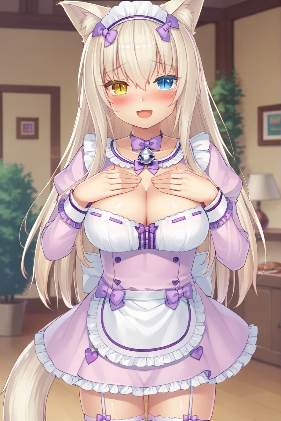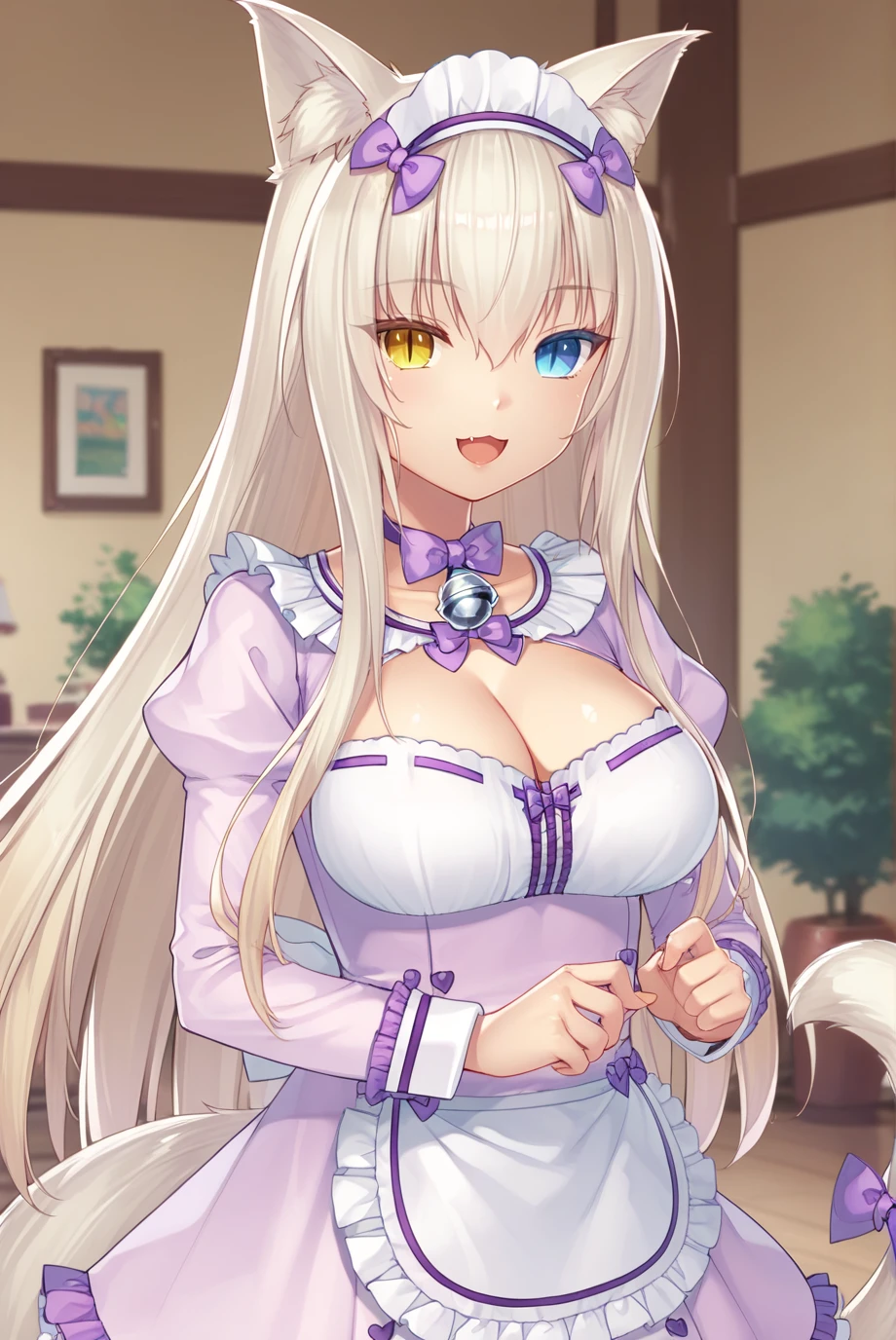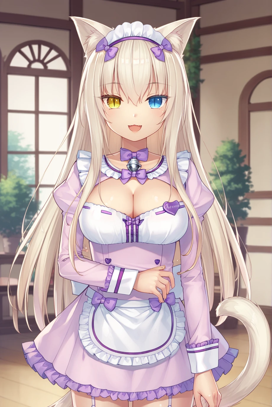 <lora:NekoparaCoconut-v3-08:0.7>, ChopioCoconut, blonde hair, long hair, very long hair, hair between eyes, cat ears, animal ear fluff, cat girl, blue eyes, yellow eyes, heterochromia, slit pupils, tail, (looking at viewer:1.3),