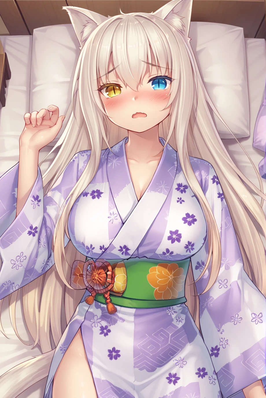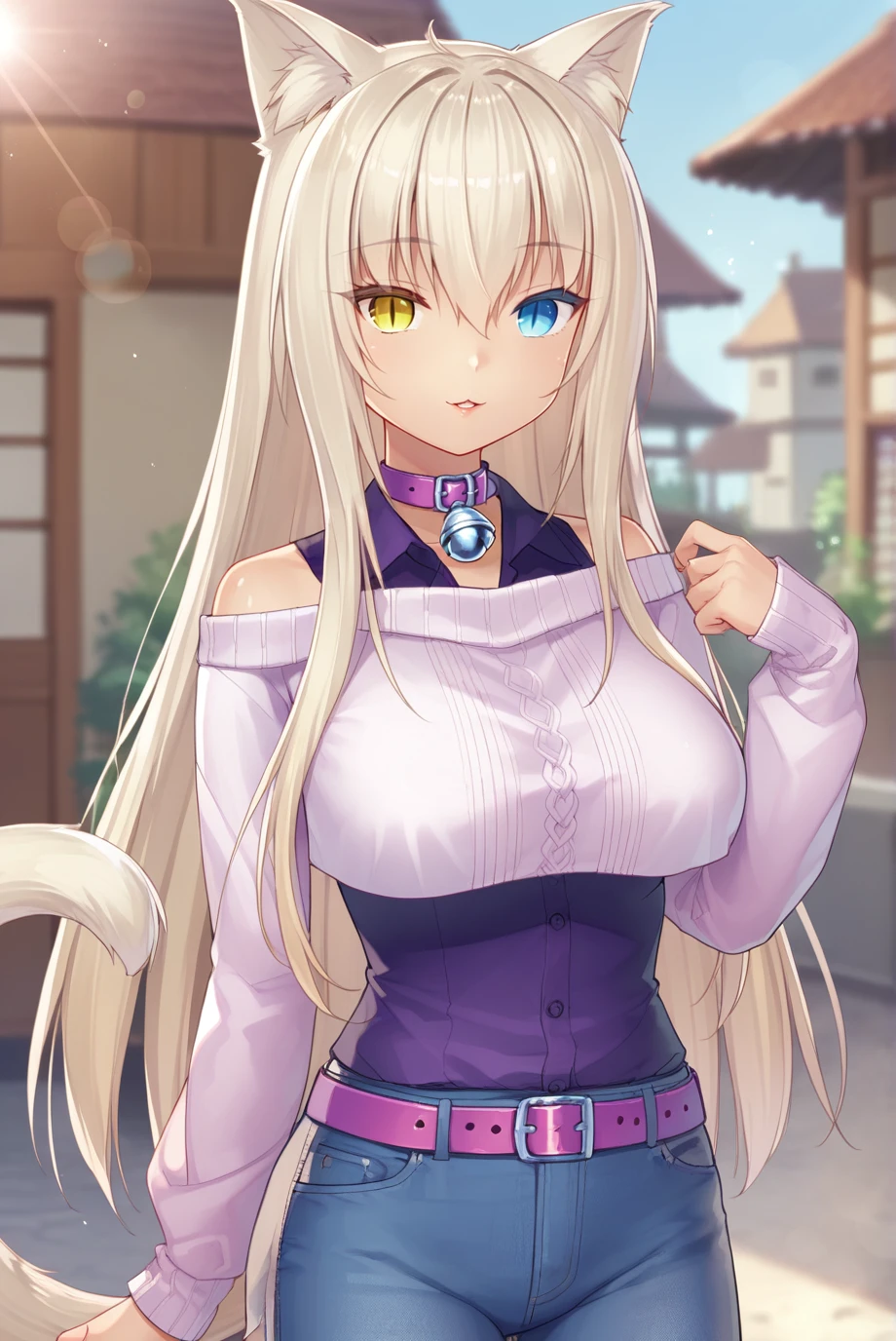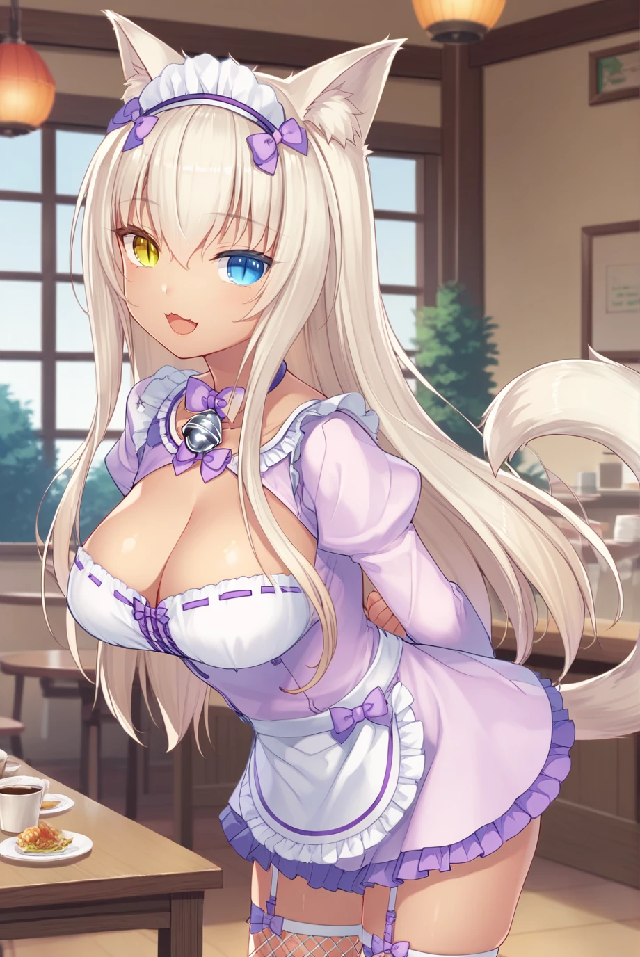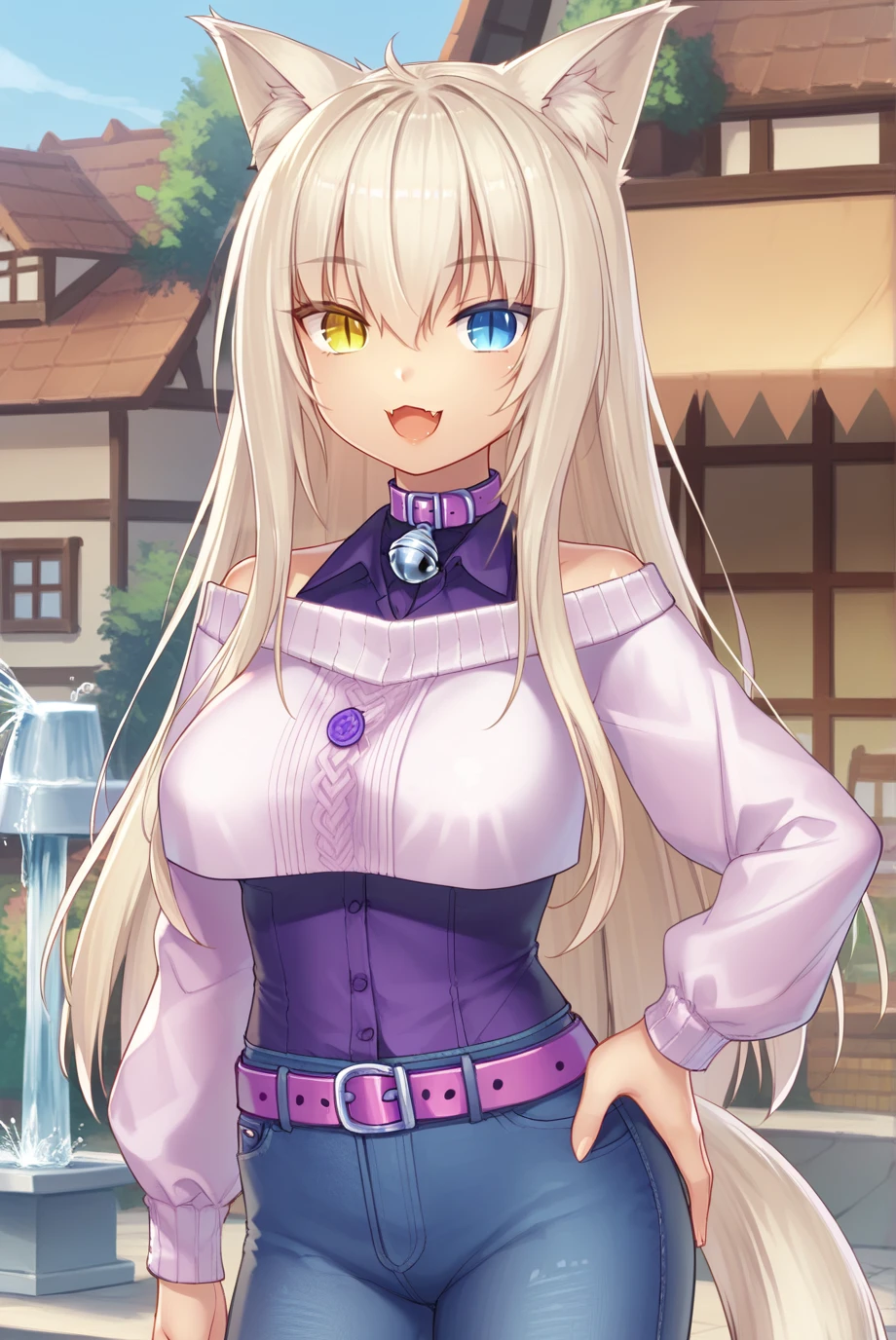 <lora:NekoparaCoconut-v3-08:0.7>, ChopioCoconut, blonde hair, long hair, very long hair, hair between eyes, cat ears, animal ear fluff, cat girl, blue eyes, yellow eyes, heterochromia, slit pupils, tail, (looking at viewer:1.3),