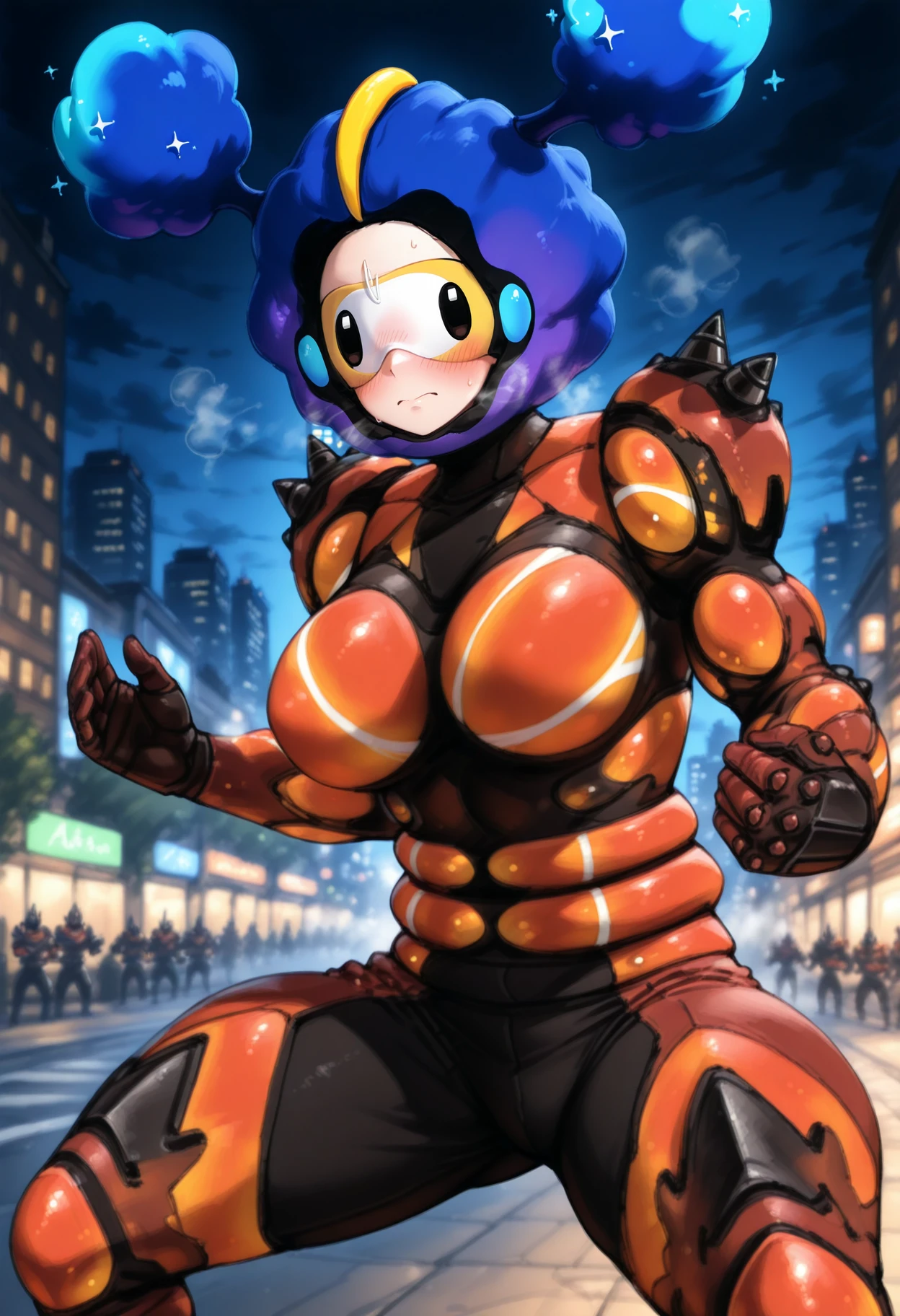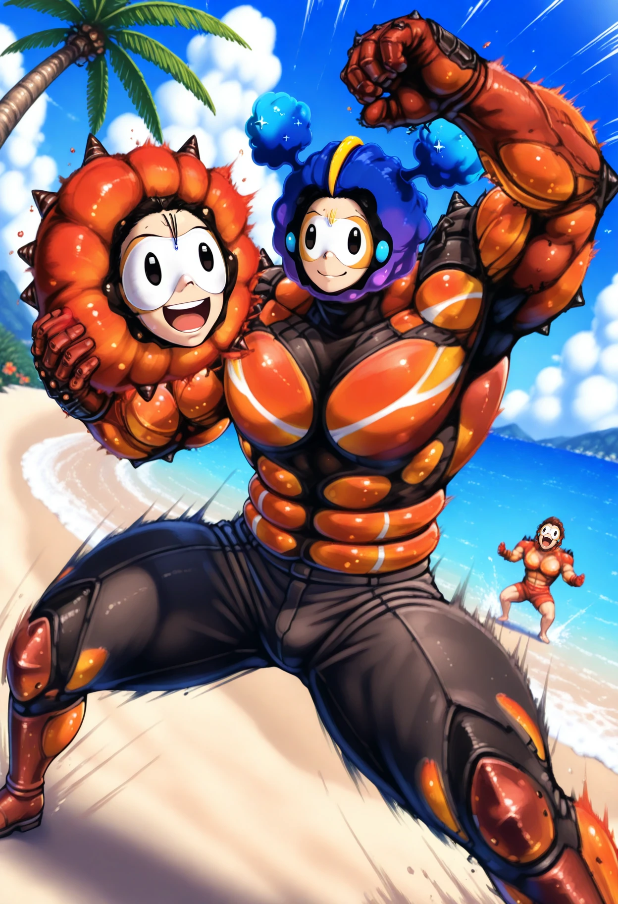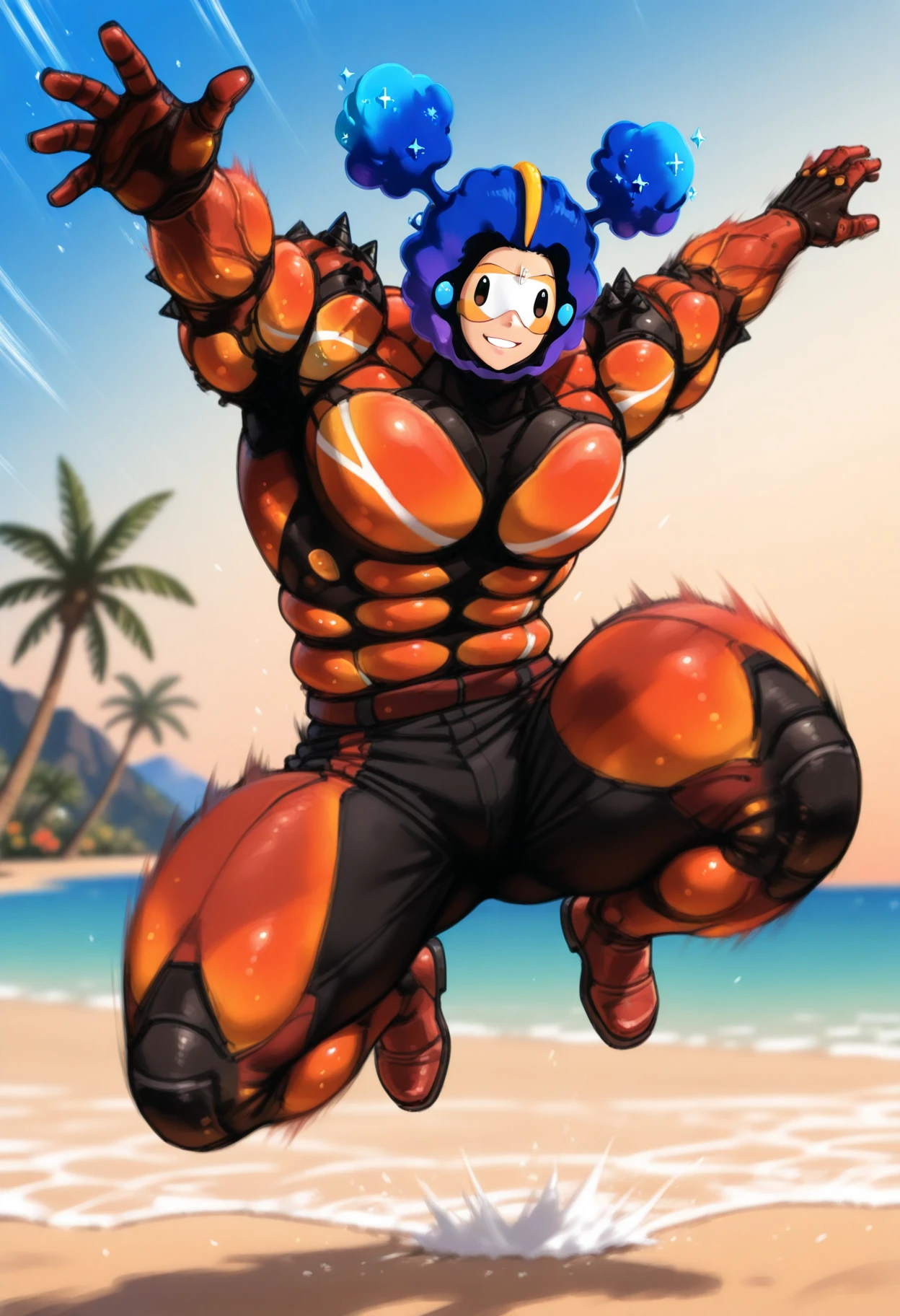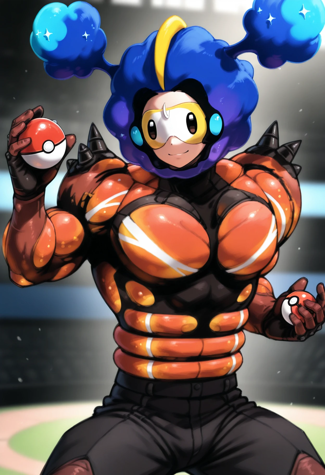 alola man, muscular, muscular male, blindfold, solid oval eyes, spikes, gloves