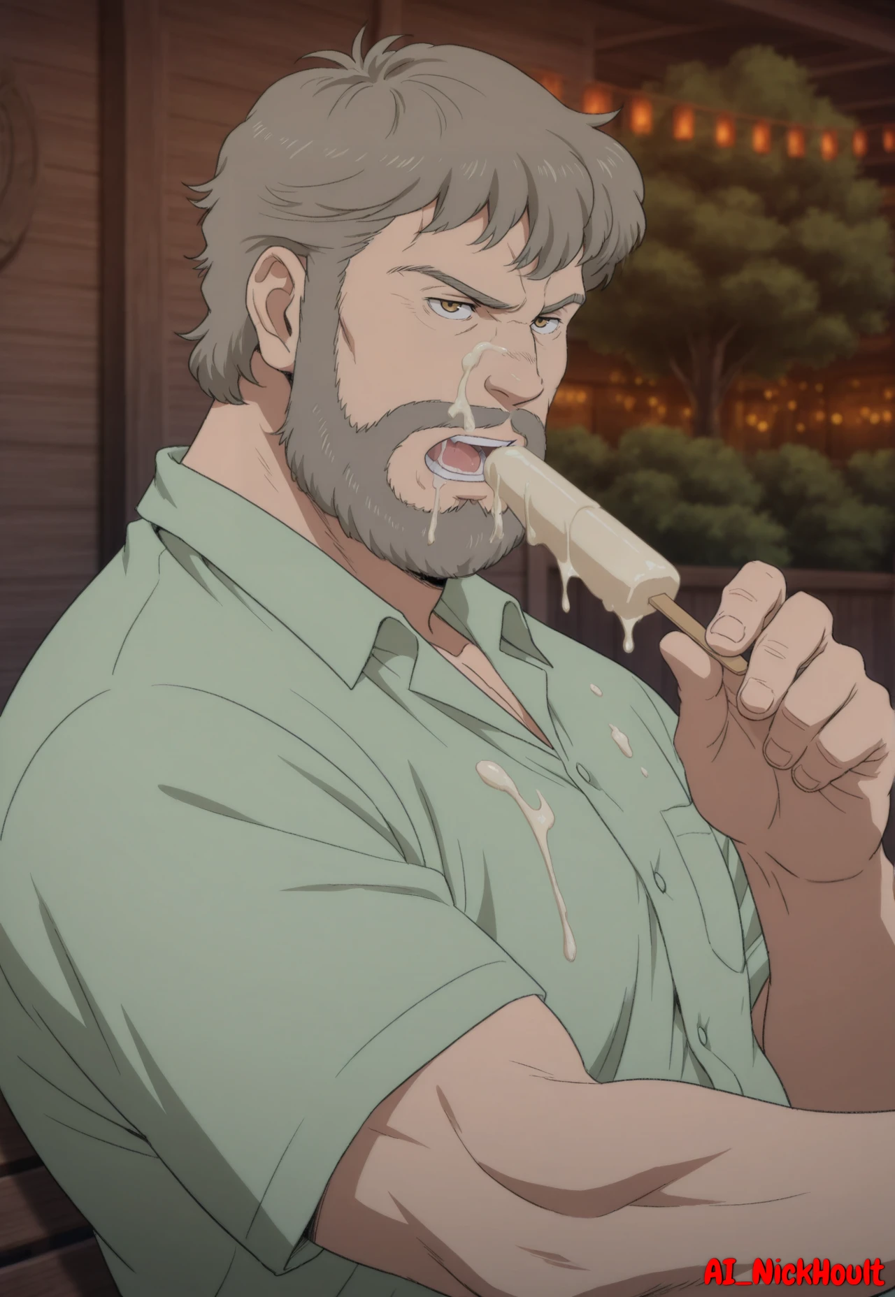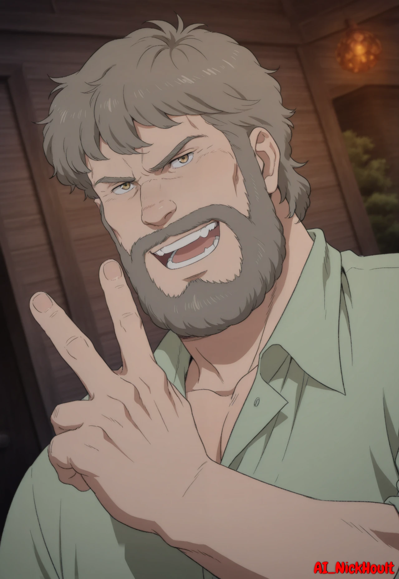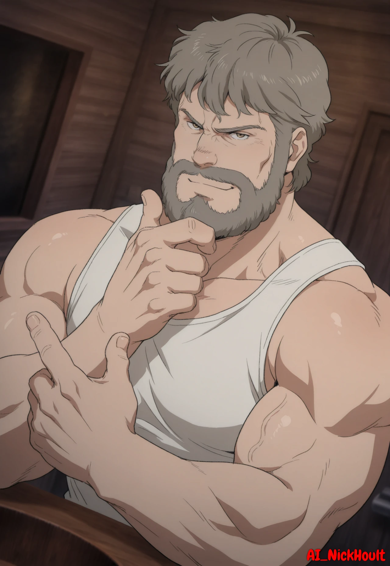 Jim_Callenreese, grey hair, facial hair, mature, yellow eyes, wrinkles,