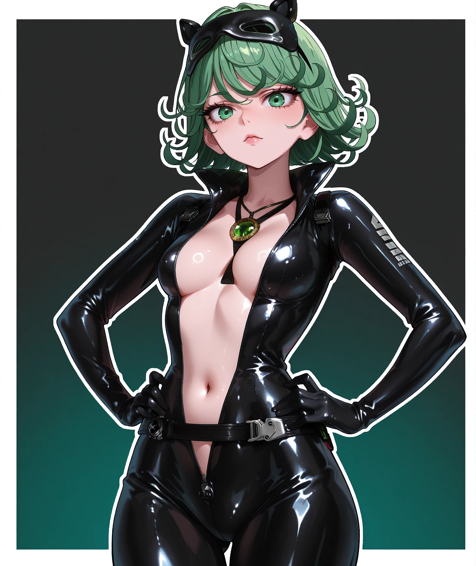 gloves, , black gloves, belt, , , skin tight, black belt, zipper, shiny clothes, black , center opening, zipper pull tab, unzipped, latex, latex , biker clothes, bikesuit, open , between breasts,