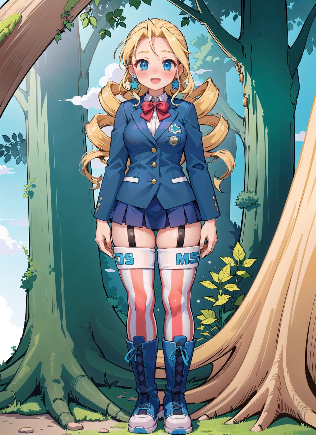 May prompts 'tiffany lords', 'justice gakuen', 'blue bandana', 'sleeveless turtleneck leotard', 'highleg', 'drill hair', 'tight clothes', 'curvy', 'antenna hair', 'blonde hair', 'star ornament', 'sideboob cutout', 'vertical striped thighhighs', 'thighhighs under boots', 'blue footwear', 'brown garter belt', 'star earrings' let you generate drawing of this sexy character. And if you replace most of above prompt with 'blue jacket', you can generate her wearing Pacific High School uniform! I hope this Lora brings joy to those who remember this game.