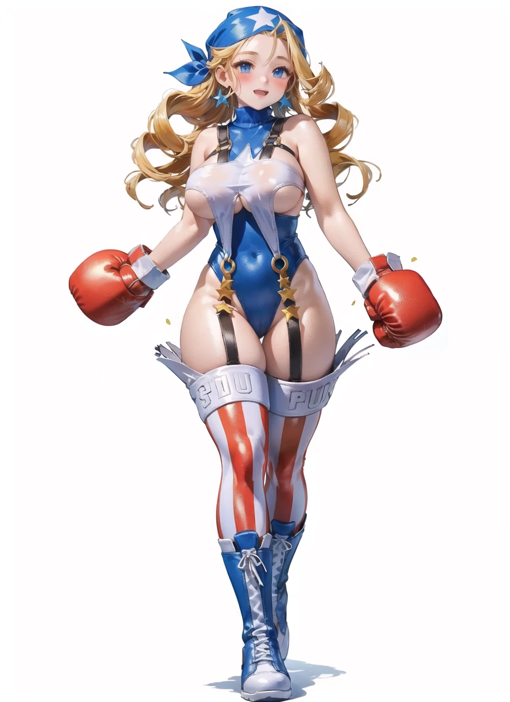 아마 tiffany lords, justice gakuen, blue bandana, sleeveless turtleneck leotard, highleg, drill hair, tight clothes, curvy, antenna hair, blonde hair, star ornament, sideboob cutout, vertical striped thighhighs, thighhighs under boots, blue footwear, brown garter belt, star earrings 등의 프롬프트로(Trigger Word) 이 섹시한 치어리더의 그림을 생성하실 수 있겠습니다. 그리고 위에 있는 프롬프트 대부분 대신 blue jacket을 넣으면, 그녀의 퍼시픽 고교 교복 차림 그림도 생성할 수 있습니다! 이 추억의 게임을 기억하는 분들께, 부디 이 Lora가 즐거움이 되었으면 합니다.