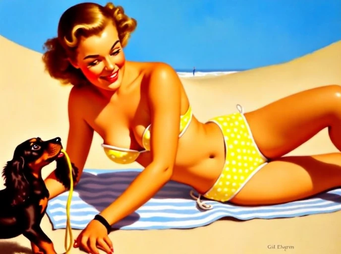Elvgren was a commercial success. He lived in various locations, and was active from the 1930s to 1970s. In 1951 he began painting in a studio in his home, then in Winnetka, Illinois, using an assistant to set up lighting, build props and scenes, photograph sets, and prepare his paints. His clients ranged from Brown and Bigelow and Coca-Cola to General Electric and Sealy Mattress Company. During the 1940s and 1950s he illustrated stories for many magazines, such as The Saturday Evening Post and Good Housekeeping. Among the models Elvgren painted were Myrna Hansen, Donna Reed, Barbara Hale, Arlene Dahl, Lola Albright and Kim Novak.