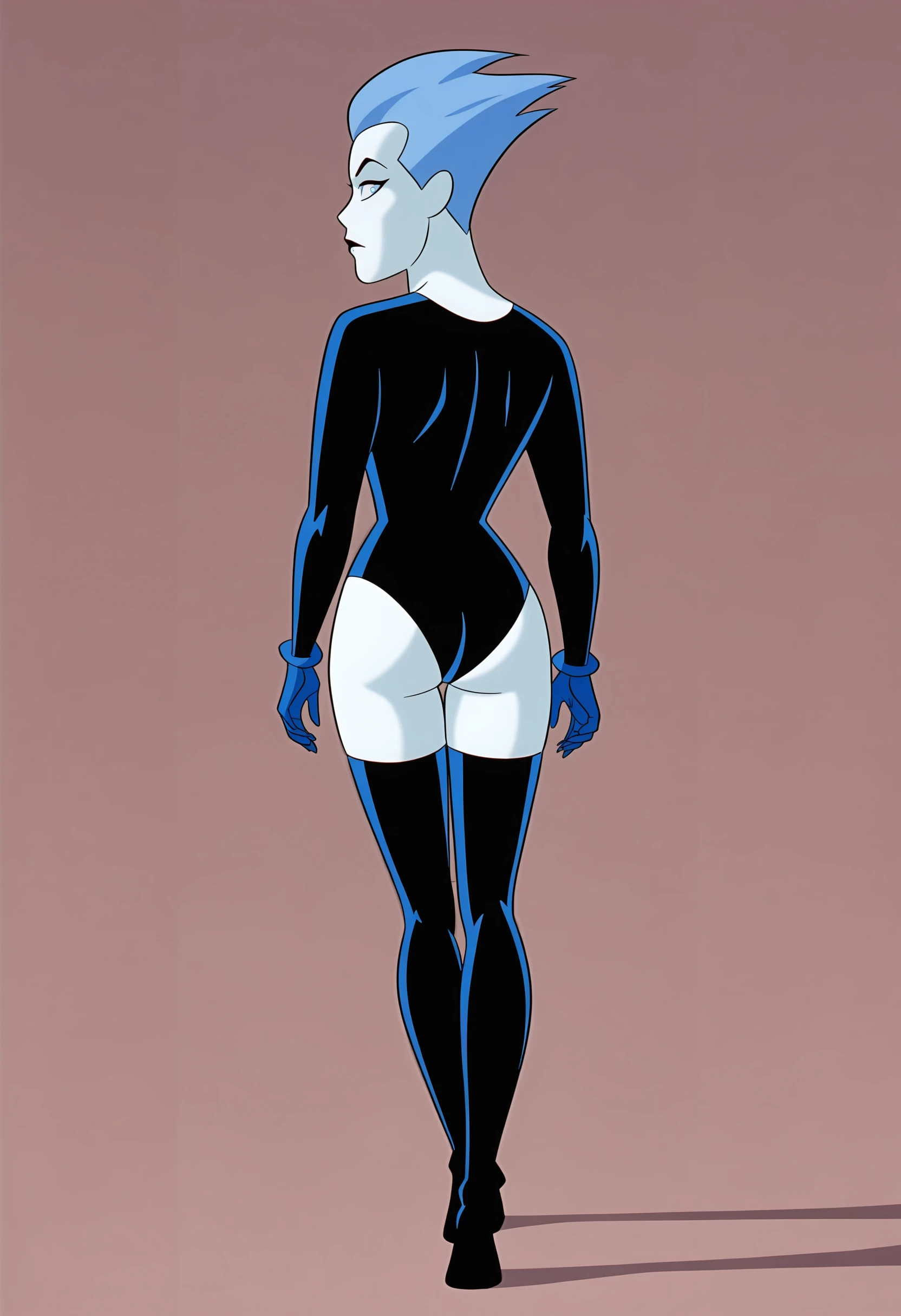 lwilf, colored skin, white skin, short hair, blue hair, blue eyes, bodysuit, center opening, thighhighs