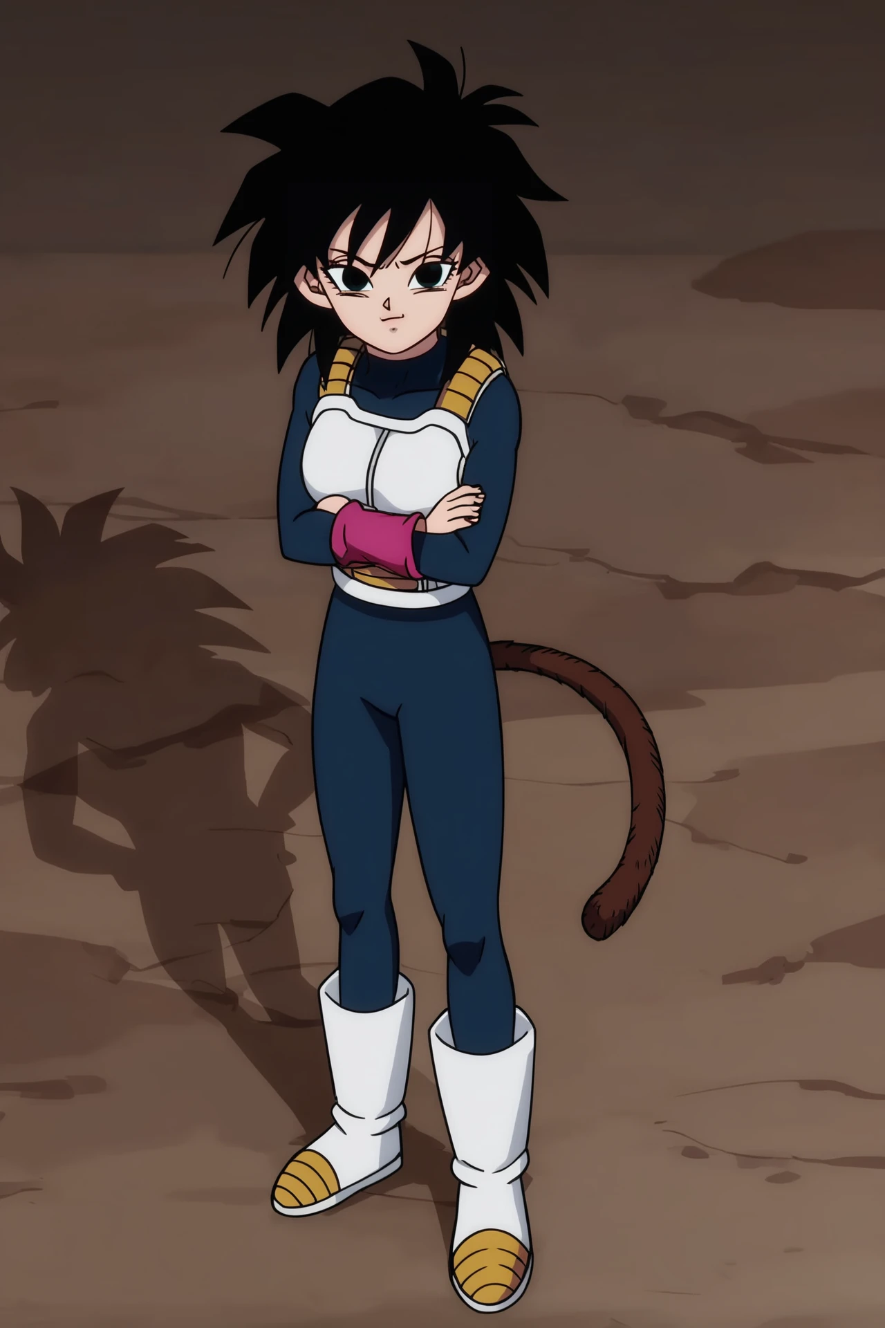 gine, black hair, medium hair, spiked hair, black eyes, monkey tail