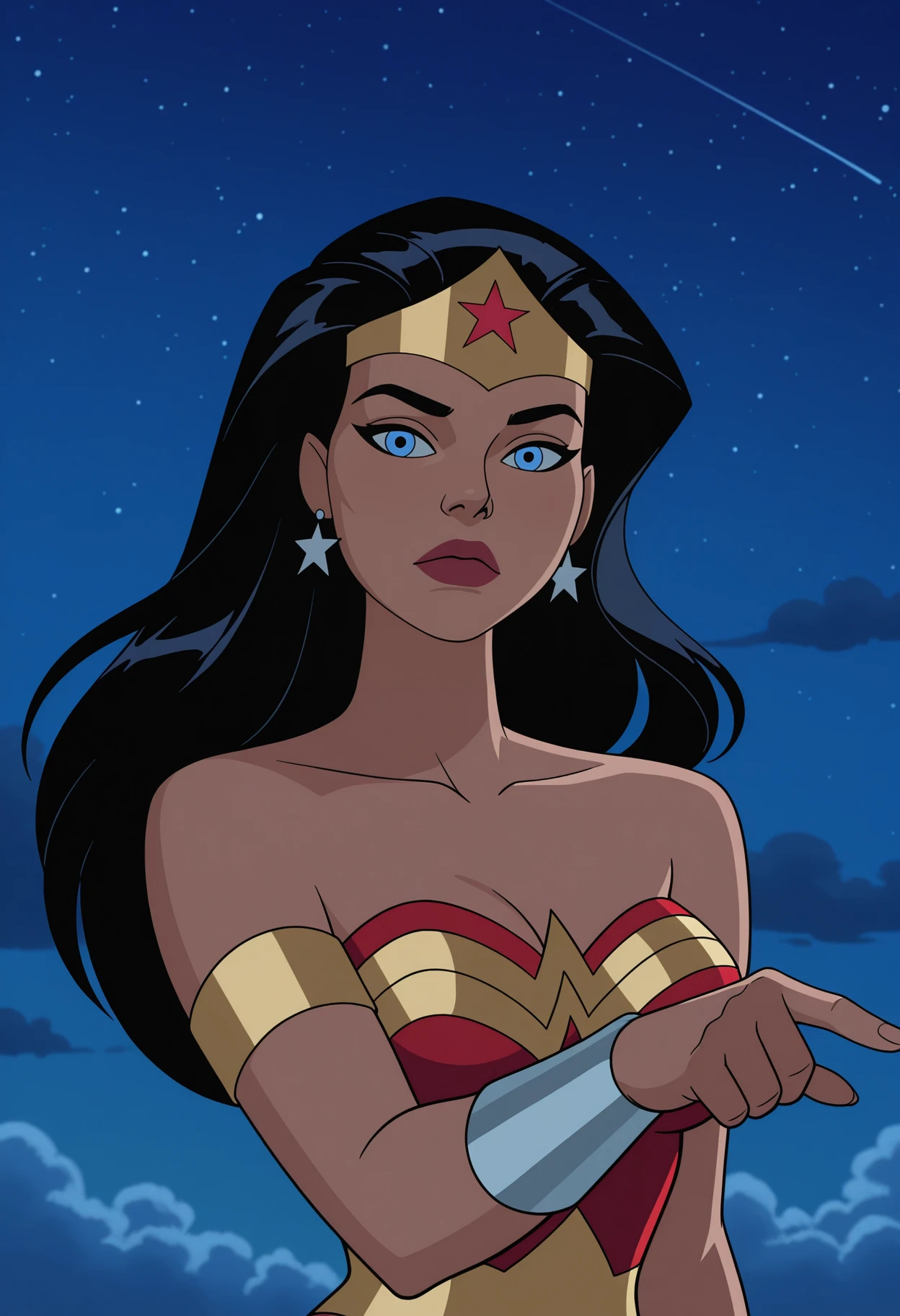 A Lora of Wonder Woman, Diana of Themyscira, from Justice League/Justice League Unlimited, American animated superhero television series produced by Warner Bros. Animation with DC Comics.