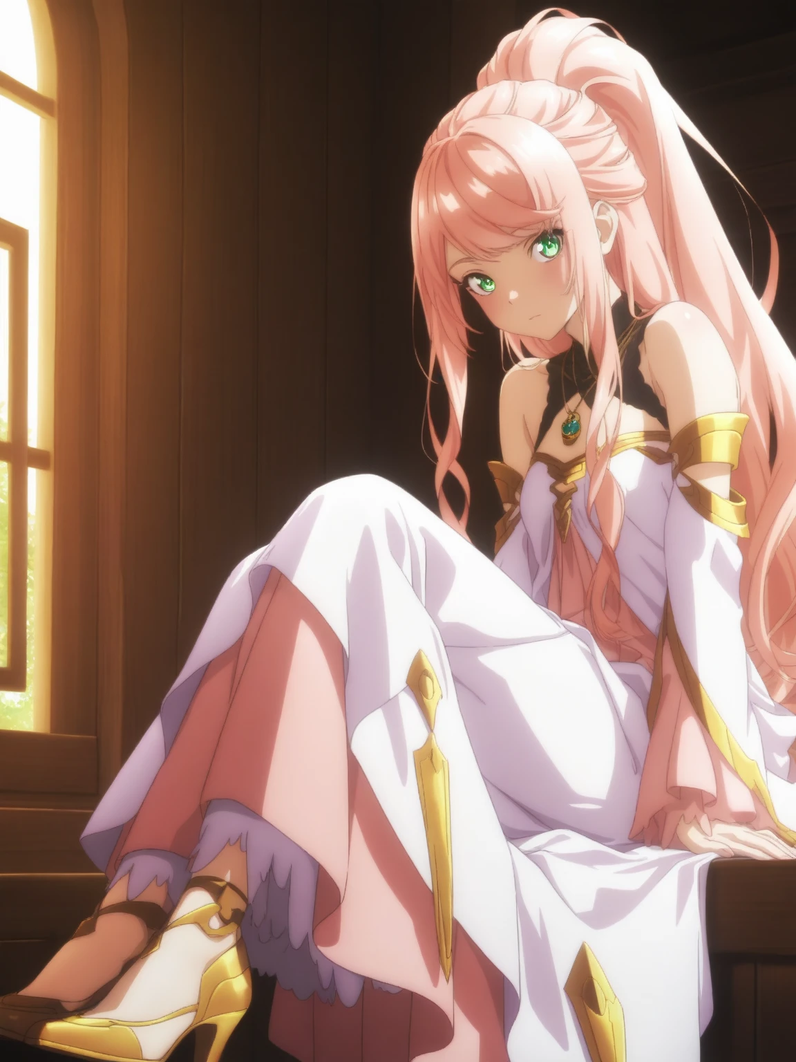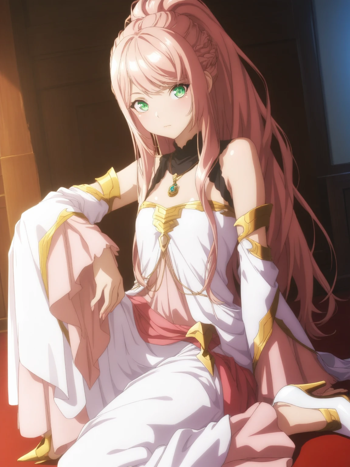 • Character: (LexiaCheat, green eyes, pink hair, sidelocks, braid, hair pulled back, high ponytail)