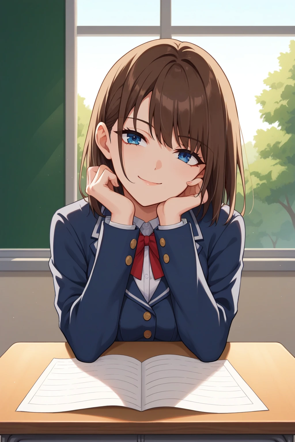 KJOrurikawa, brown hair, blue eyes, medium hair,