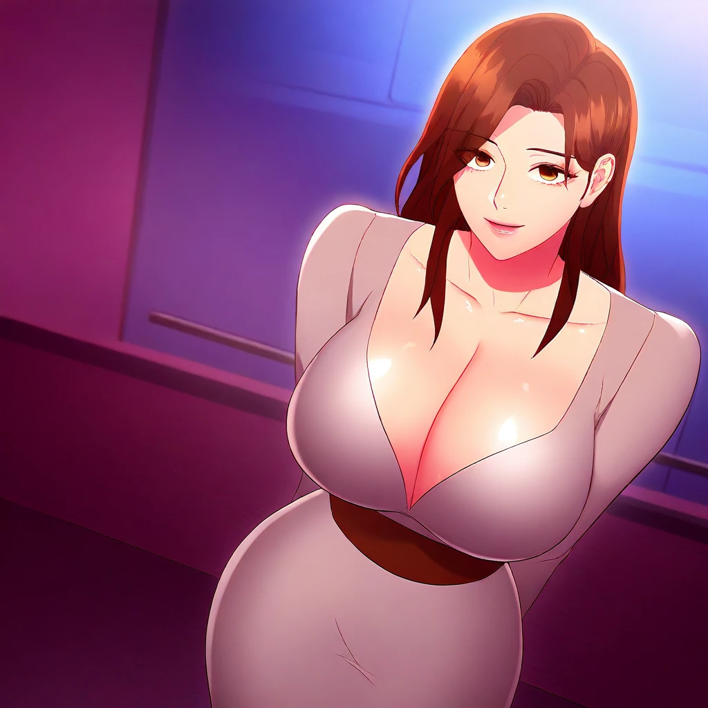 (( <lora:song_chae-yoon:1> , song_chae-yoon, piercing light brown eyes, clear eyes, bright pupils, beautiful eyes, beautiful brown hair, long hair, huge and shaggy breast, thin waist, wide hips, beautiful skin, beauty, extraordinary beautiful woman, attractive woman, super sexy woman, lustful body, sexy milf with seductive obscene body, sensual body, voluptuous body, ))
