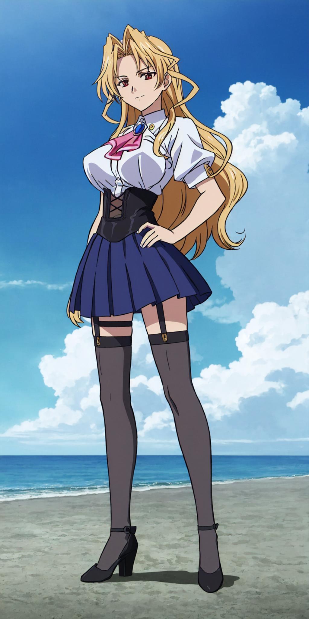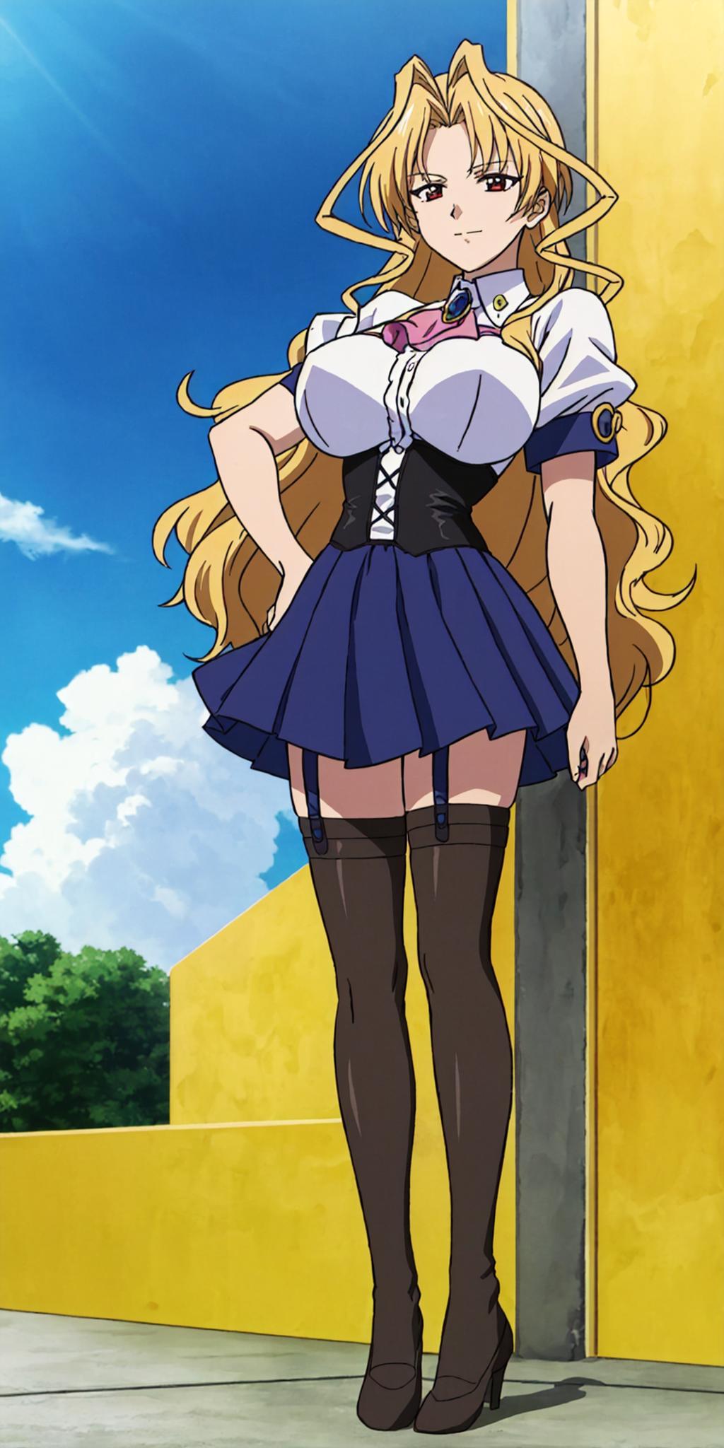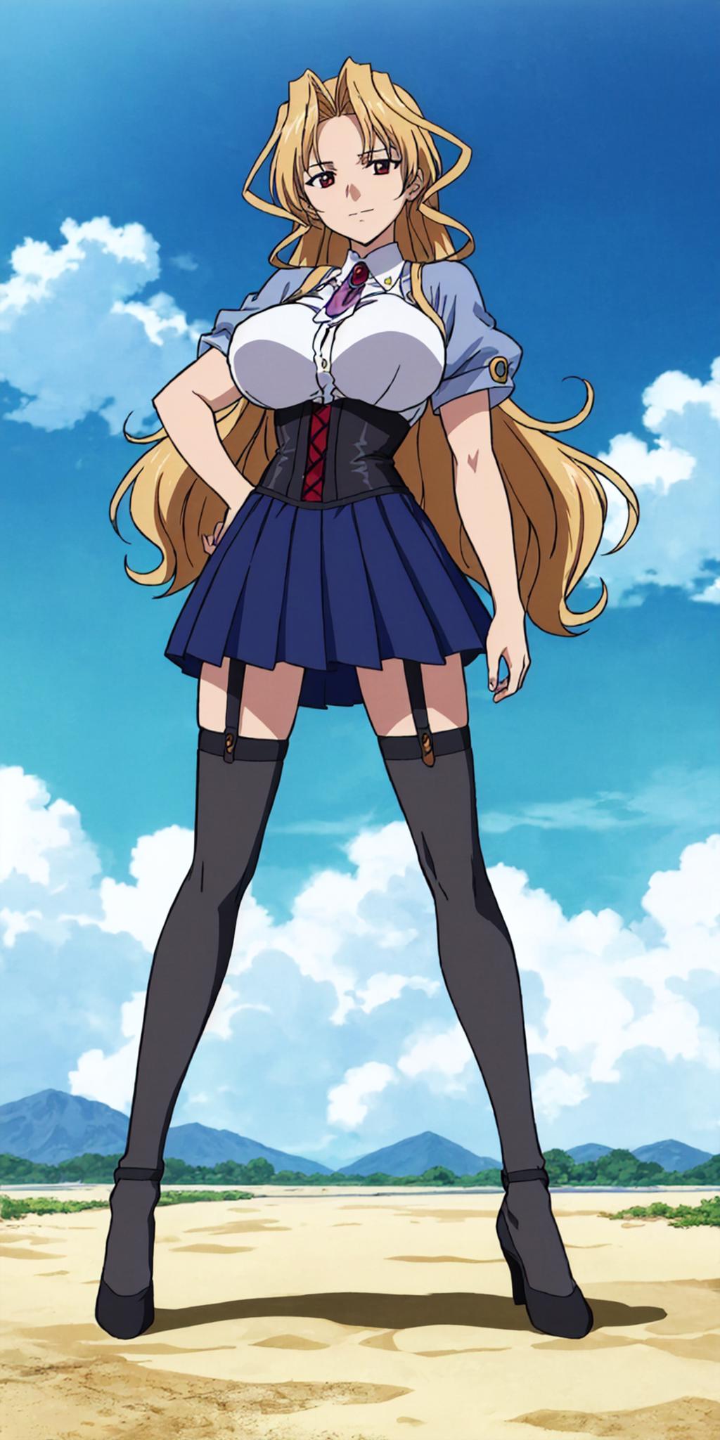 Basic prompts : blonde hair, long hair, red eyes