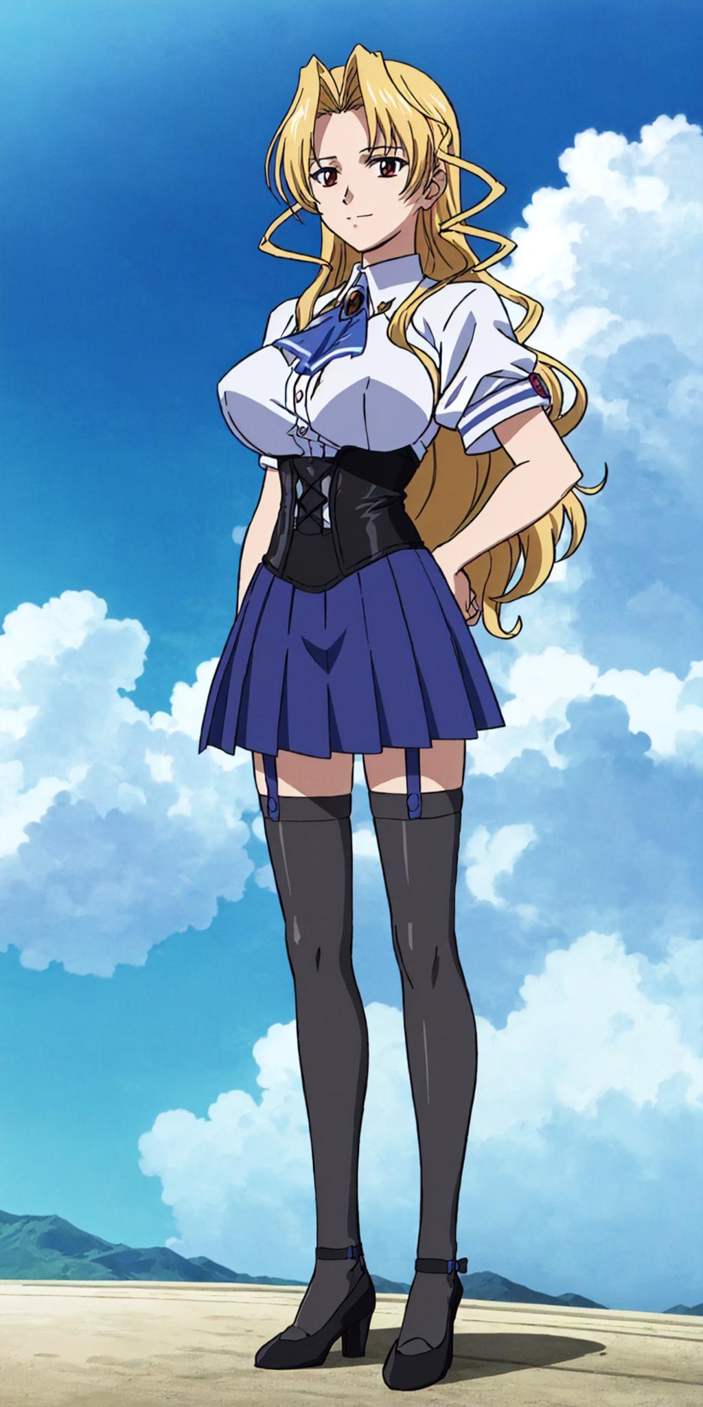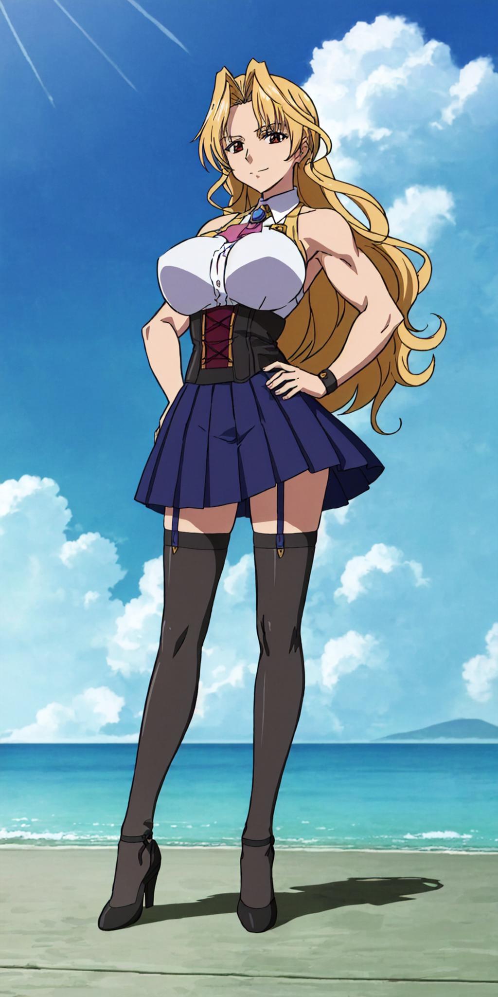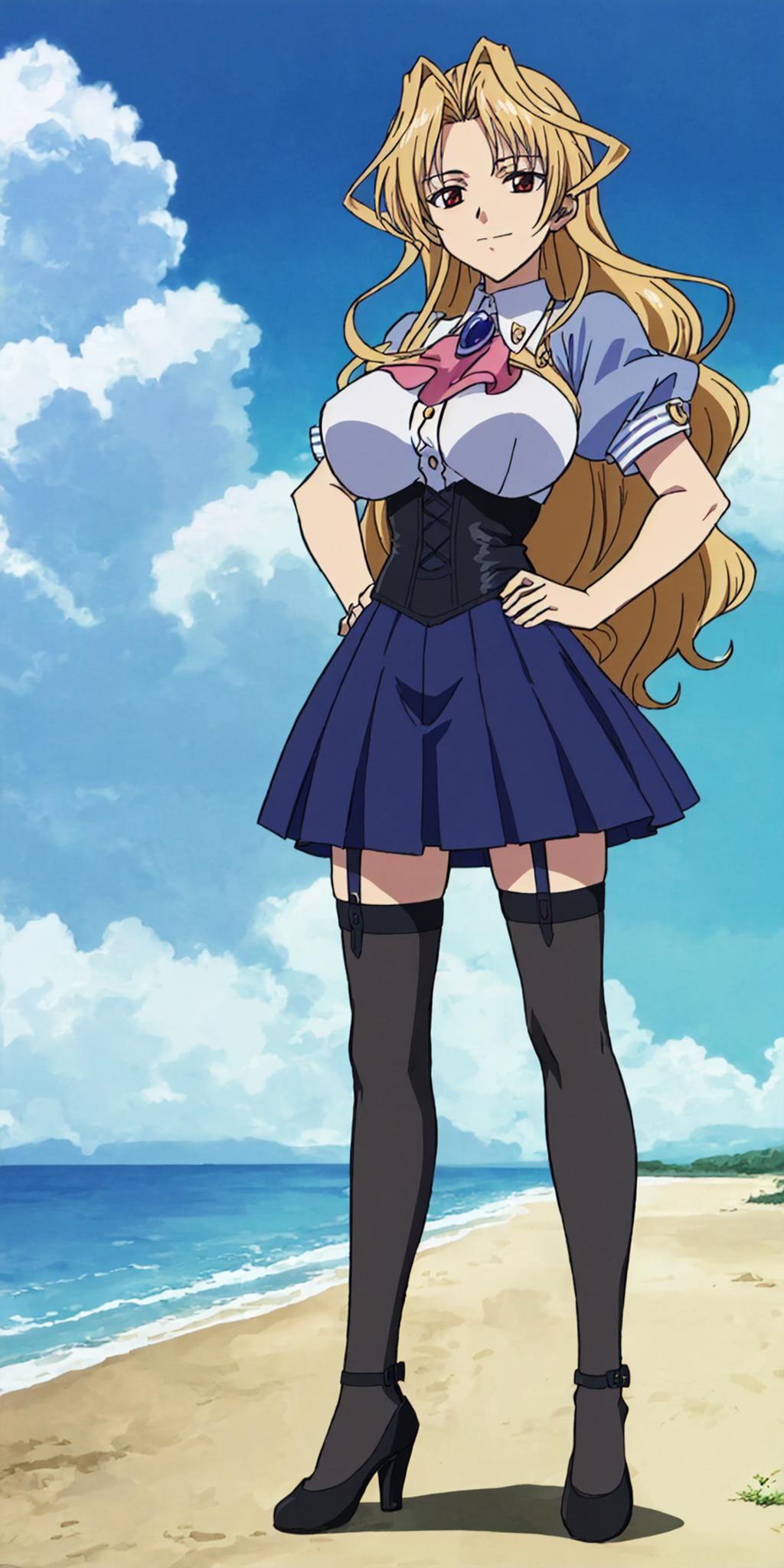 Basic prompts : blonde hair, long hair, red eyes