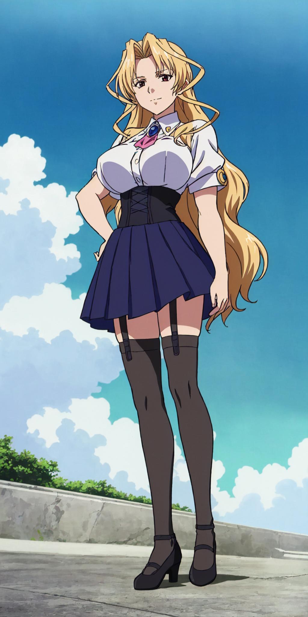 Classic outfit prompts : brooch, skirt, thighhighs