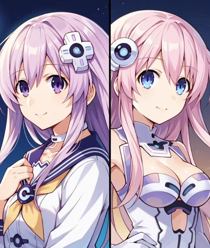 NpGr, nepgear, long hair, pink hair, blue eyes,Character Prompts are included in each Outfit.