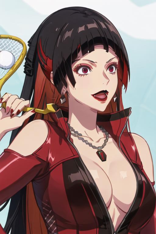 The trigger word is vipere_birdiewinggolfgirlsstory, and the recommended tags are best quality, masterpiece, highres, solo, {vipere_birdiewinggolfgirlsstory:1.15}, black_hair, jewelry, makeup, red_eyes, open_mouth, long_hair, lipstick, necklace, bangs, earrings, blunt_bangs, multicolored_hair, breasts.