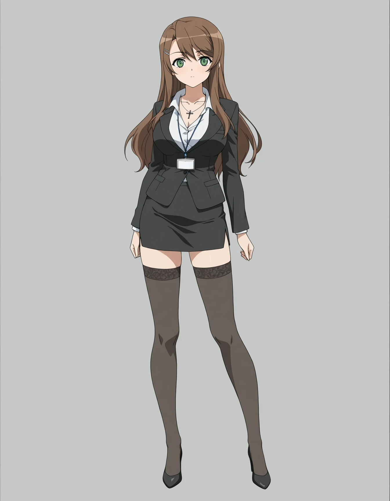 mai_nwef,mai_medonanw,short_hair,leotard,black_hair,blue_eyes,large_breasts,top_hat,blue_leotard,cleavage_cutout,white_jacket,white_high_heels