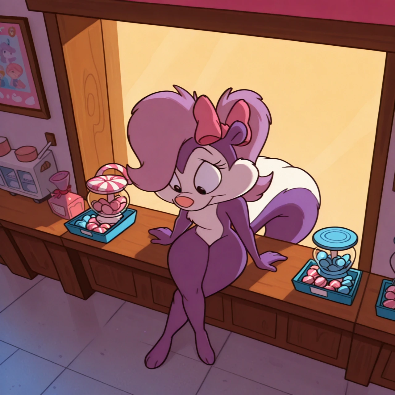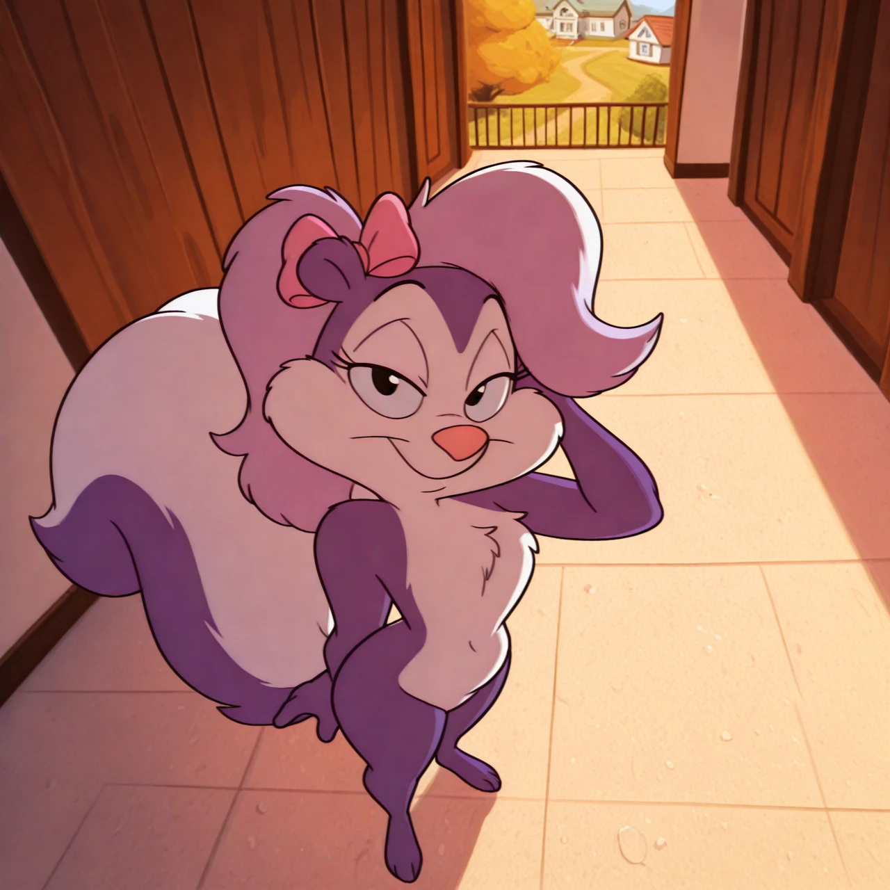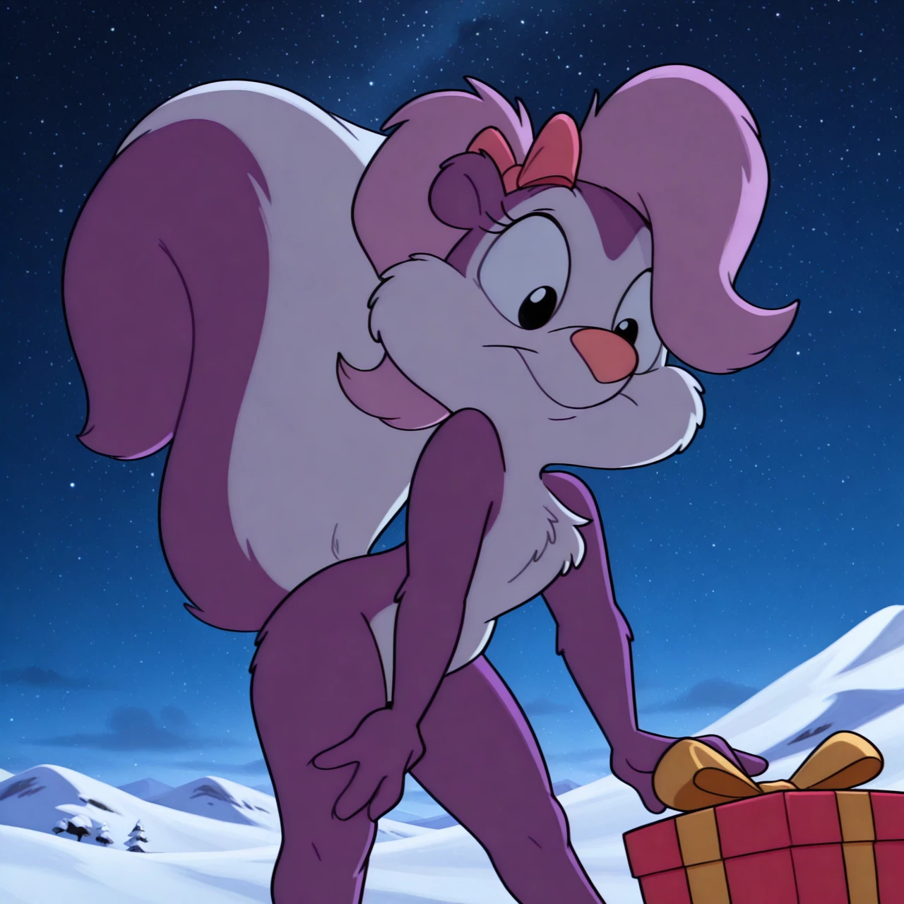 Positive Prompt: fifitms, bow ribbon, short stack, fluffy tail, close-up