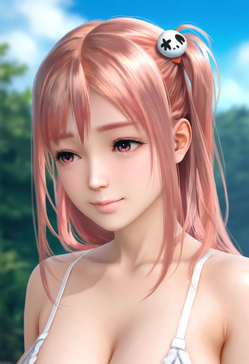 doa-honoka,pink hair,skull hair ornament, one side up,long hair