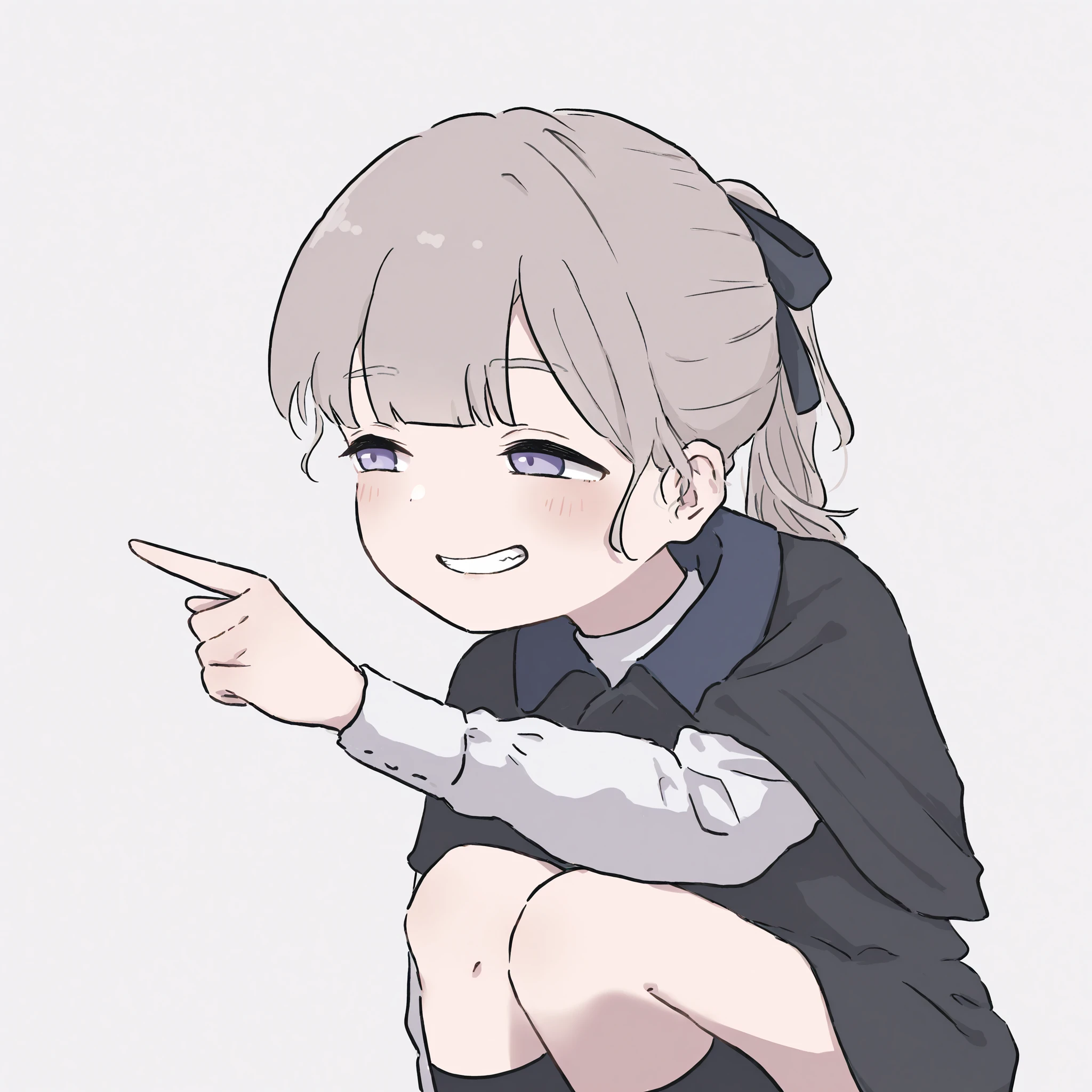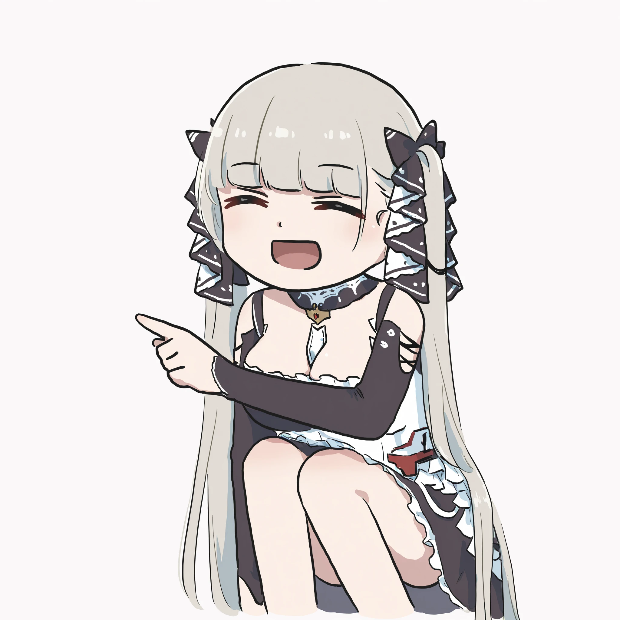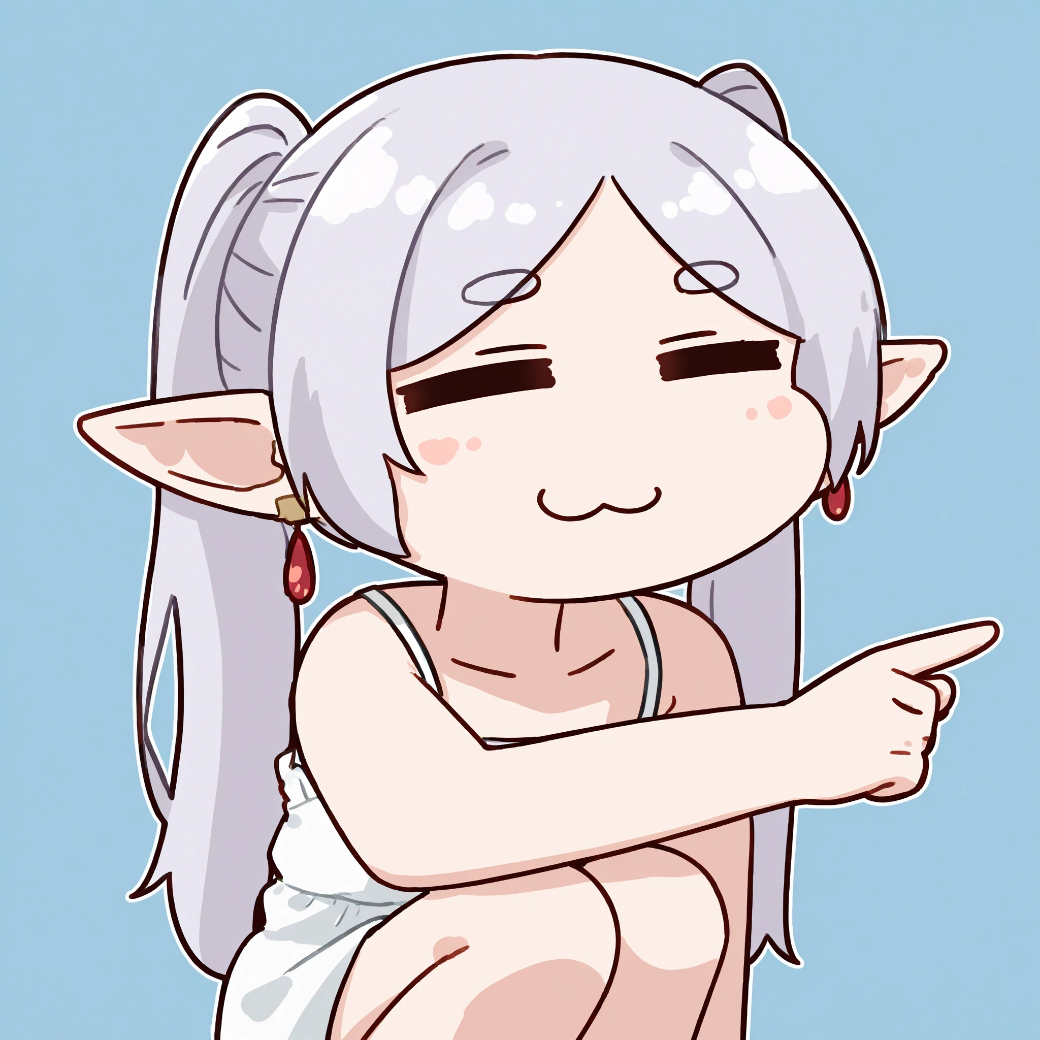 positive_prompts = "(masterpiece, extremely aesthetic, best quality, amazing quality), newest, highres, absurdres, chibi, pointing to the side \\(meme\\), squatting, feet out of frame, 1girl, long hair, blue hair, ahoge, hair flower, white flower, ^ ^, :d, sleeveless dress, white dress, detached sleeves, long sleeves, white sleeves, single thighhigh, black thighhighs, white background"