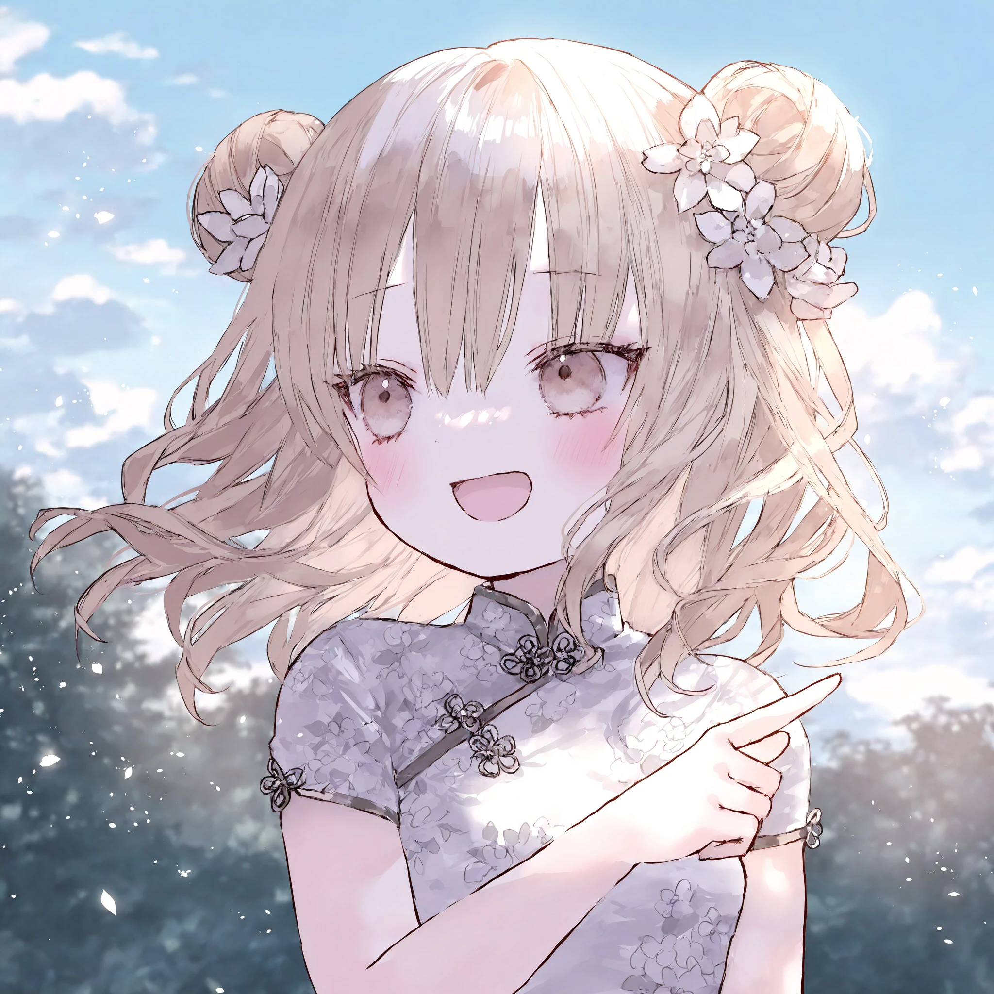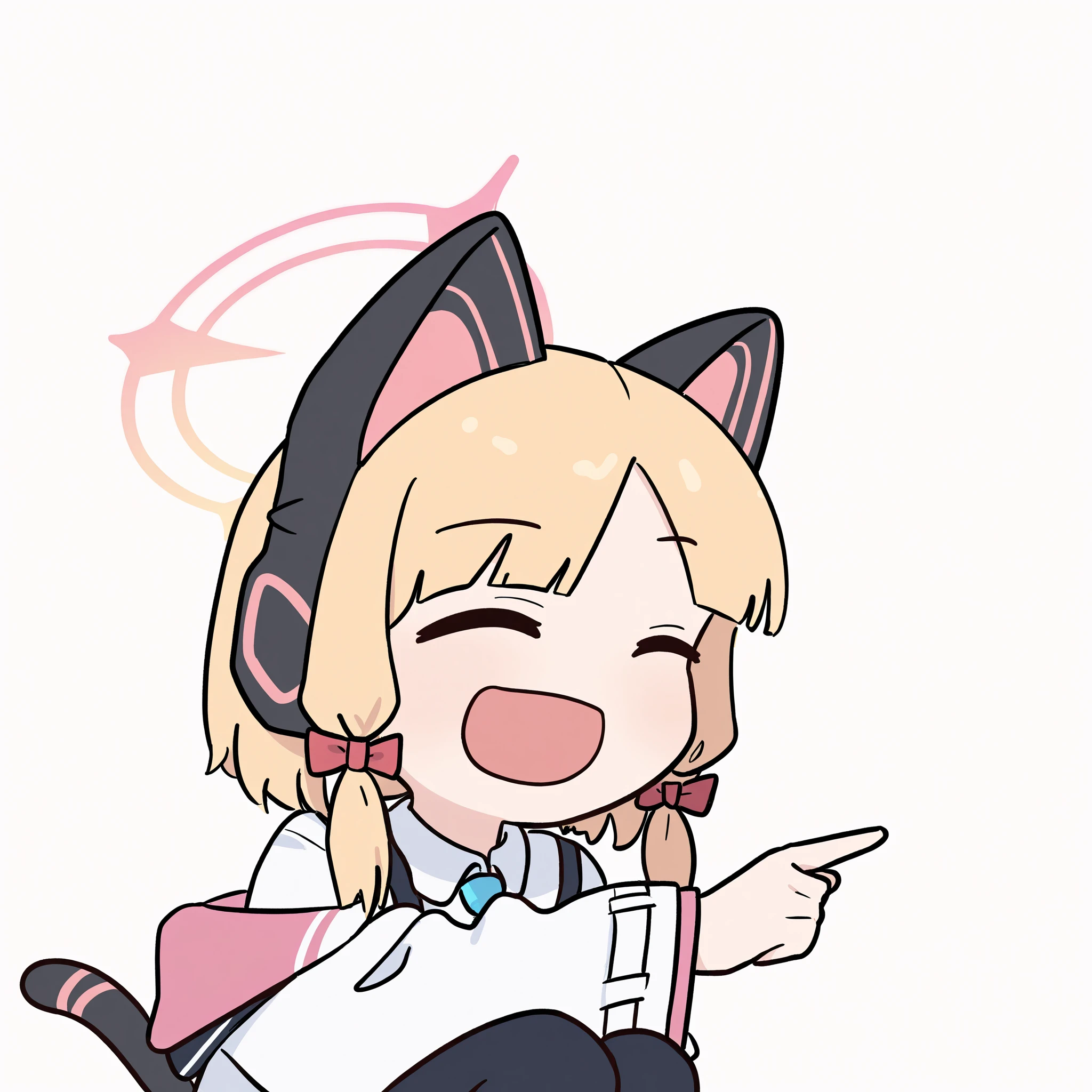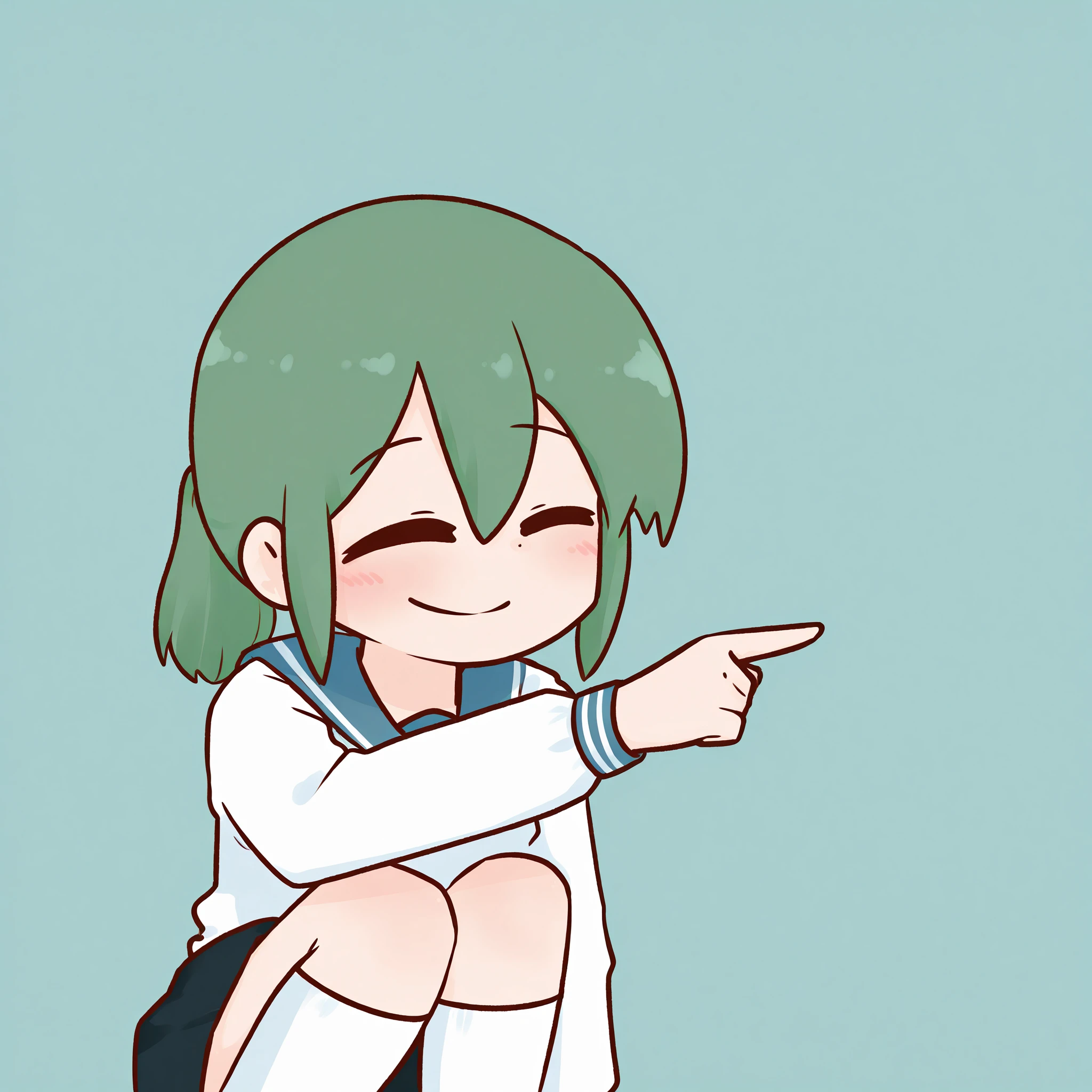 positive_prompts = "(masterpiece, extremely aesthetic, best quality, amazing quality), newest, highres, absurdres, chibi, pointing to the side \\(meme\\), squatting, feet out of frame, 1girl, long hair, blue hair, ahoge, hair flower, white flower, ^ ^, :d, sleeveless dress, white dress, detached sleeves, long sleeves, white sleeves, single thighhigh, black thighhighs, white background"