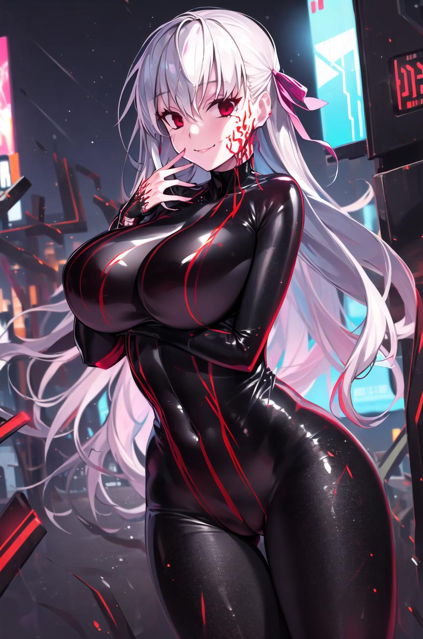 If you're making image with clothes different than original dress, using striped seems to add a stripe pattern similiar to the dress. Also red body markings usually appear with the dress, but for more revealing outfits you will have to use body markings, corruption if you want them to appear in any form other than on the side of the face.