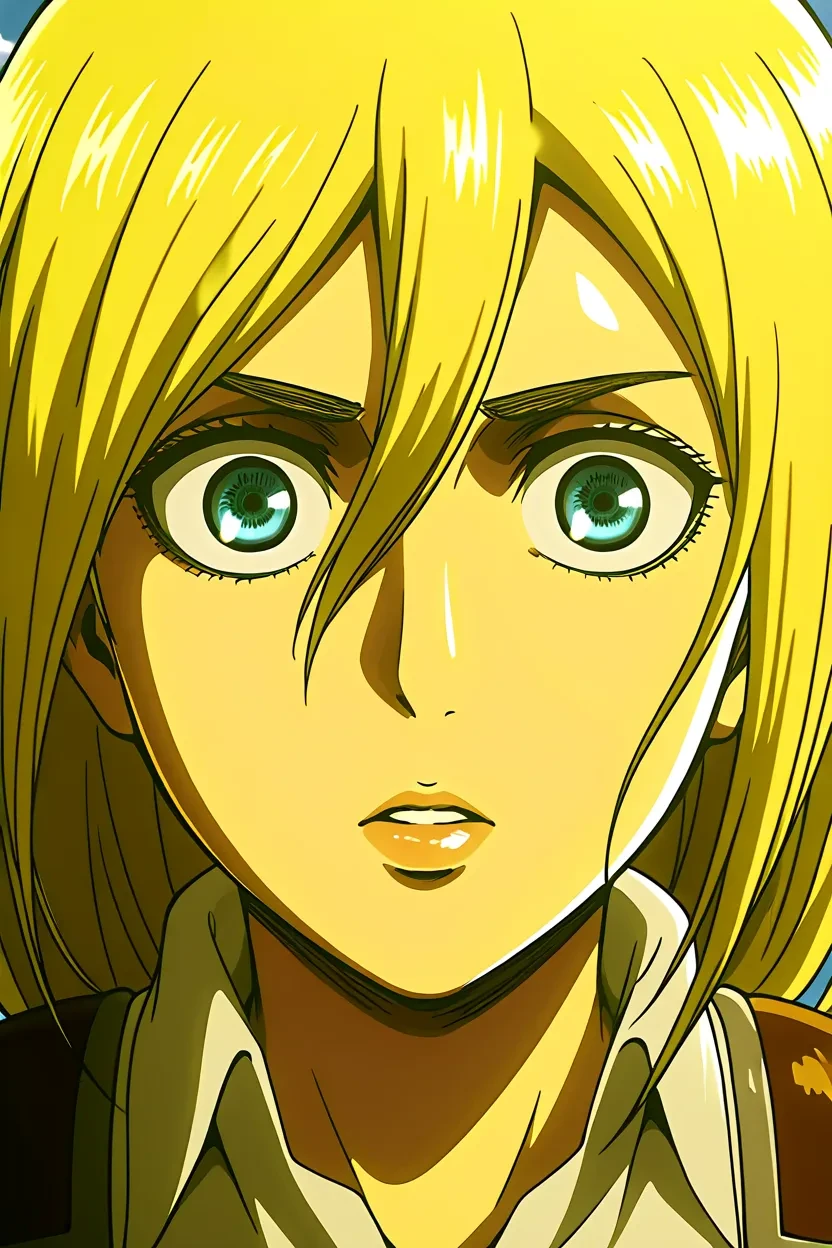 1girl, Historia Reiss (Attack on Titan), blue_eyes, blonde_hair, long_hair, lips, glossy_lips, , attack_on_titan_art_style, No-Flaws, superb quality
