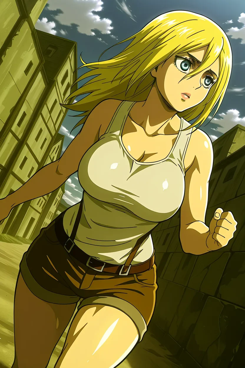 1girl, Historia Reiss (Attack on Titan), blue_eyes, blonde_hair, long_hair, lips, glossy_lips, , curvy, extremely , wide_, thick_thighs, , fully_, , , attack_on_titan_art_style, No-Flaws, superb quality