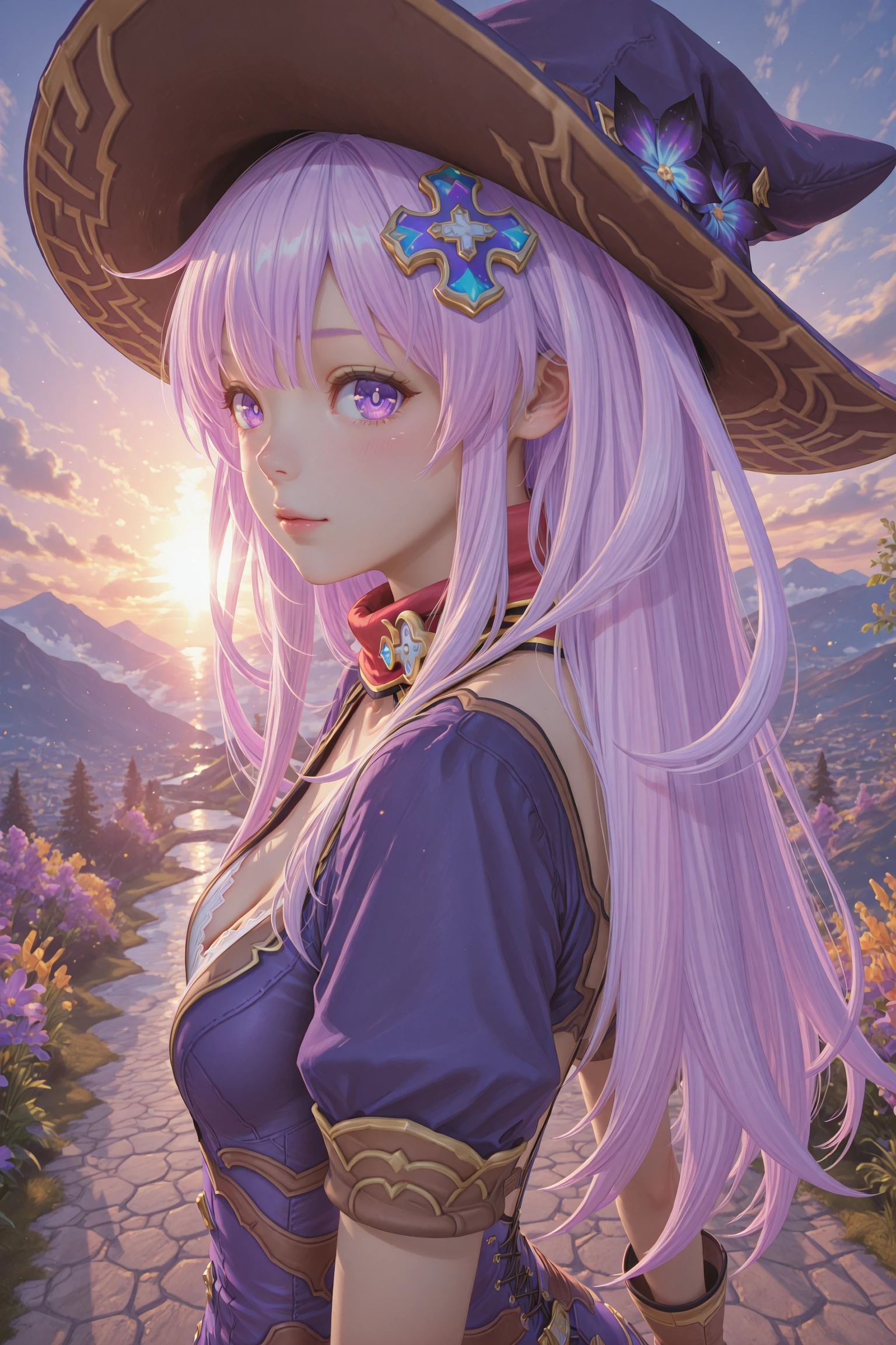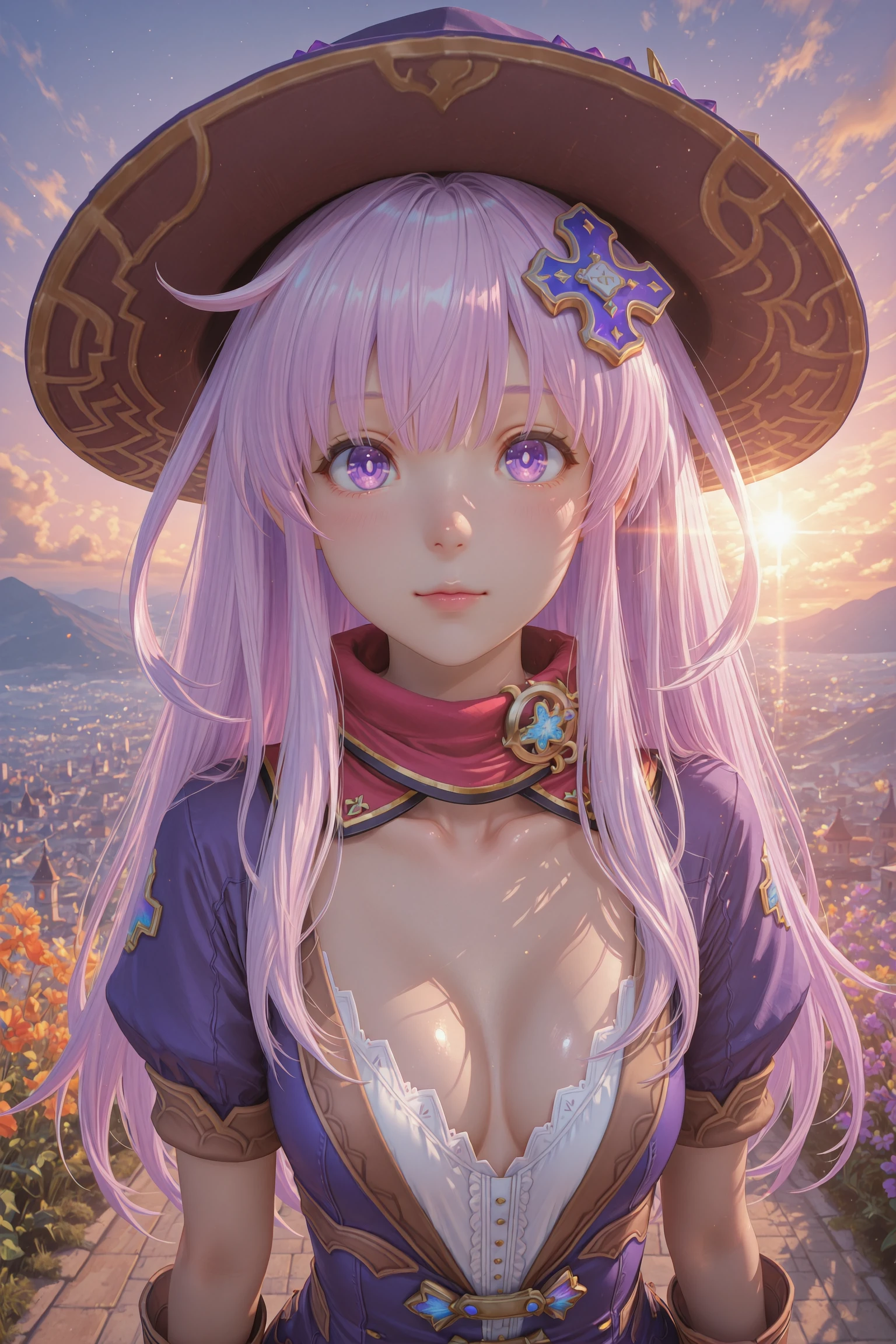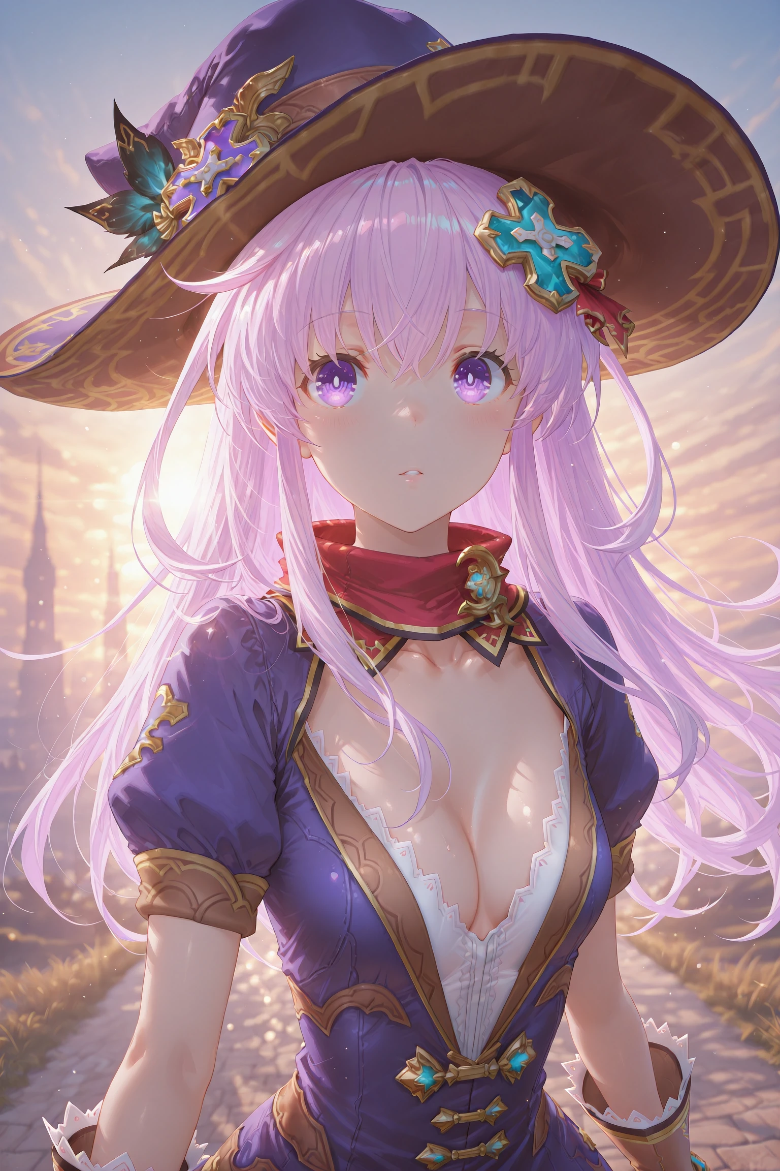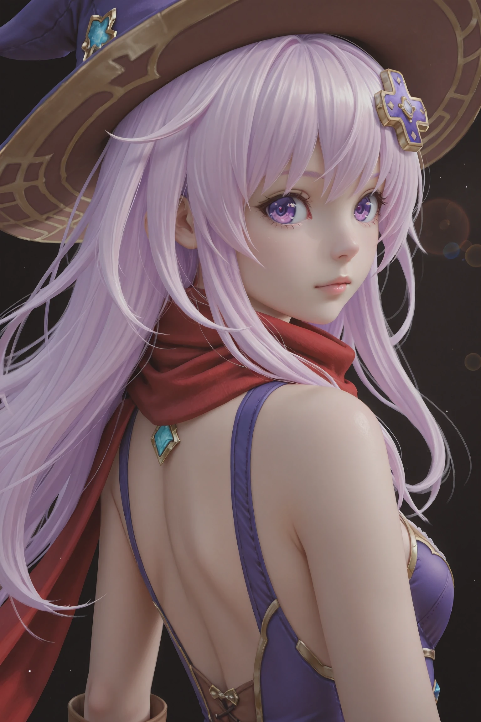 Nepgear,1girl,nepgear,solo,purple eyes,hair ornament,hat,dress,gloves,long hair,purple hair,boots,short dress,d-pad,d-pad hair ornament,