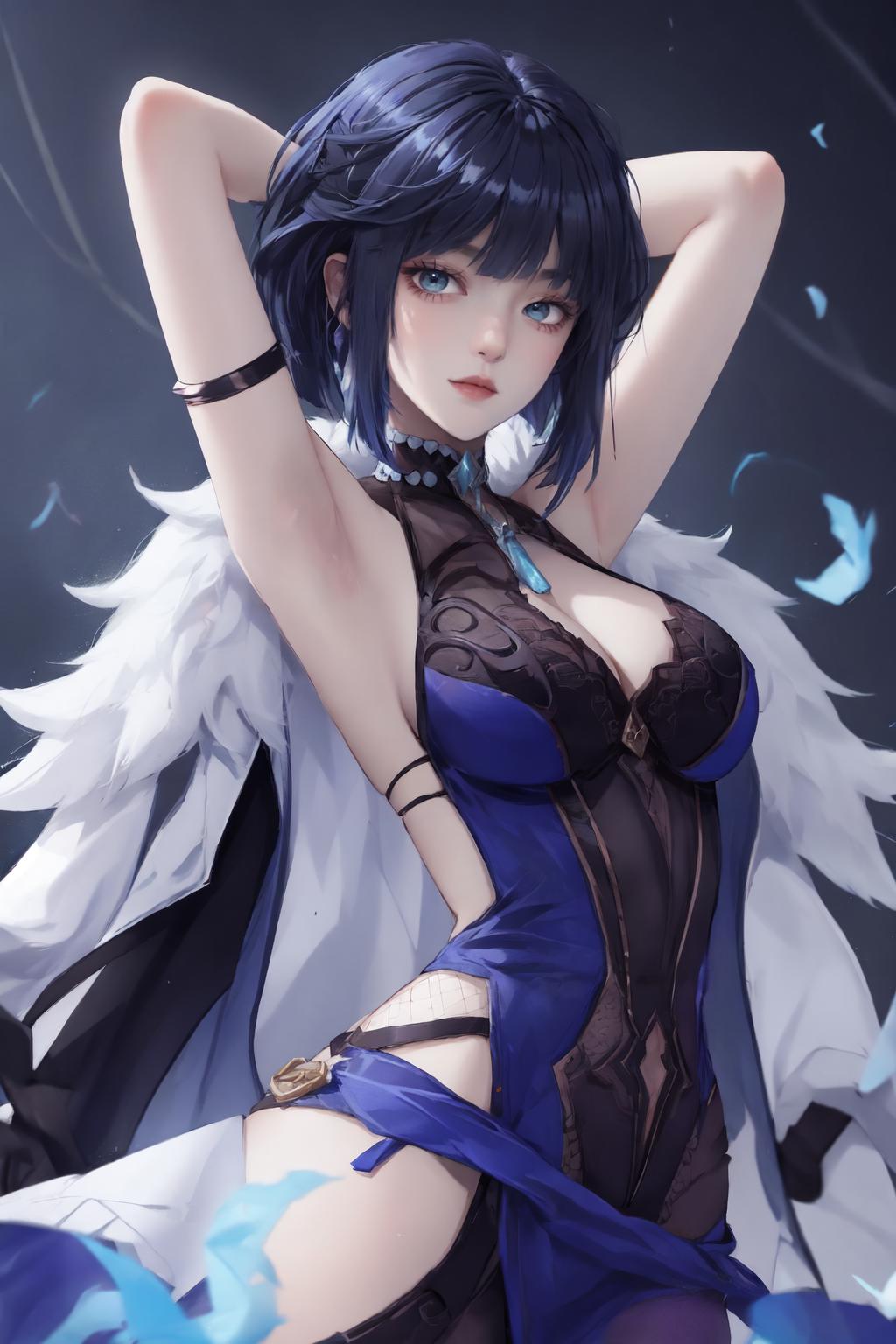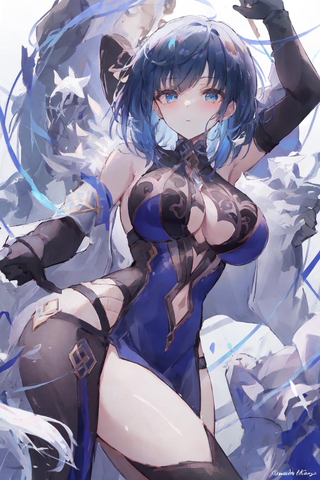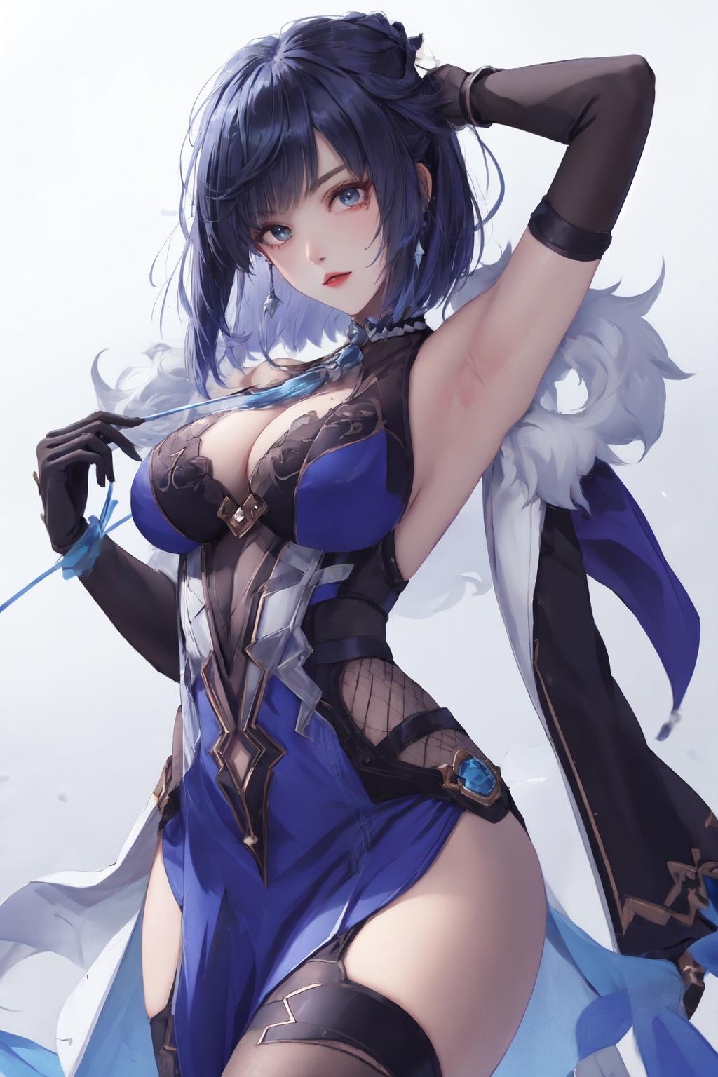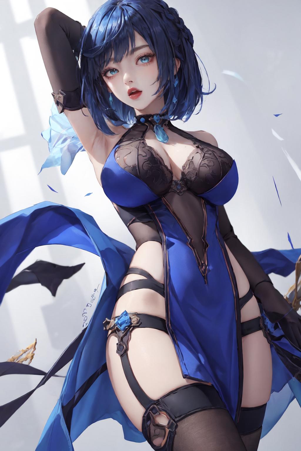 Suggested trigger phrases: 1girl, yelan, blue hair, green eyes