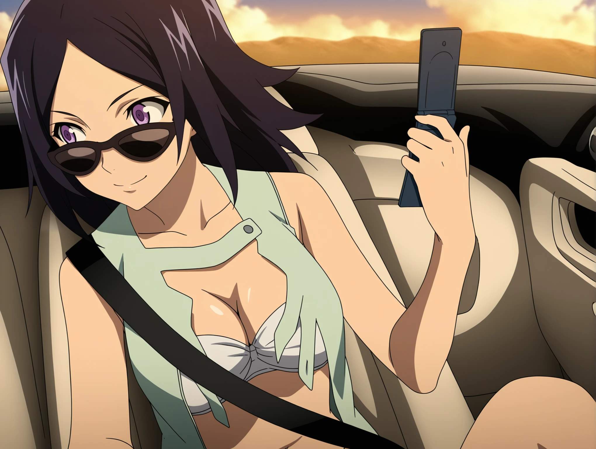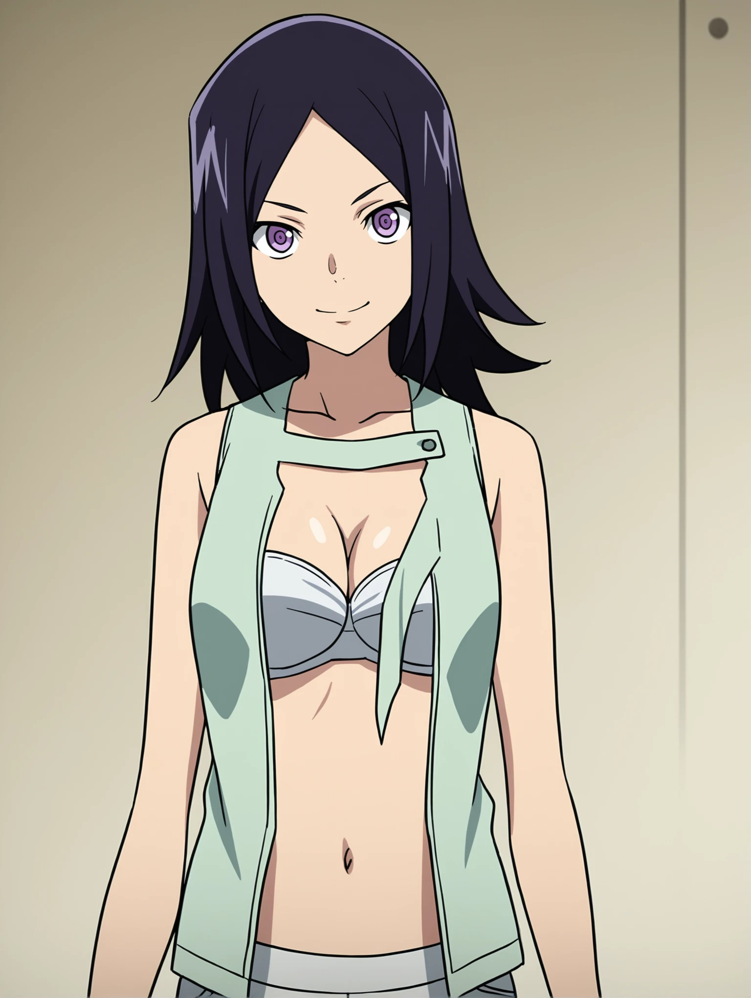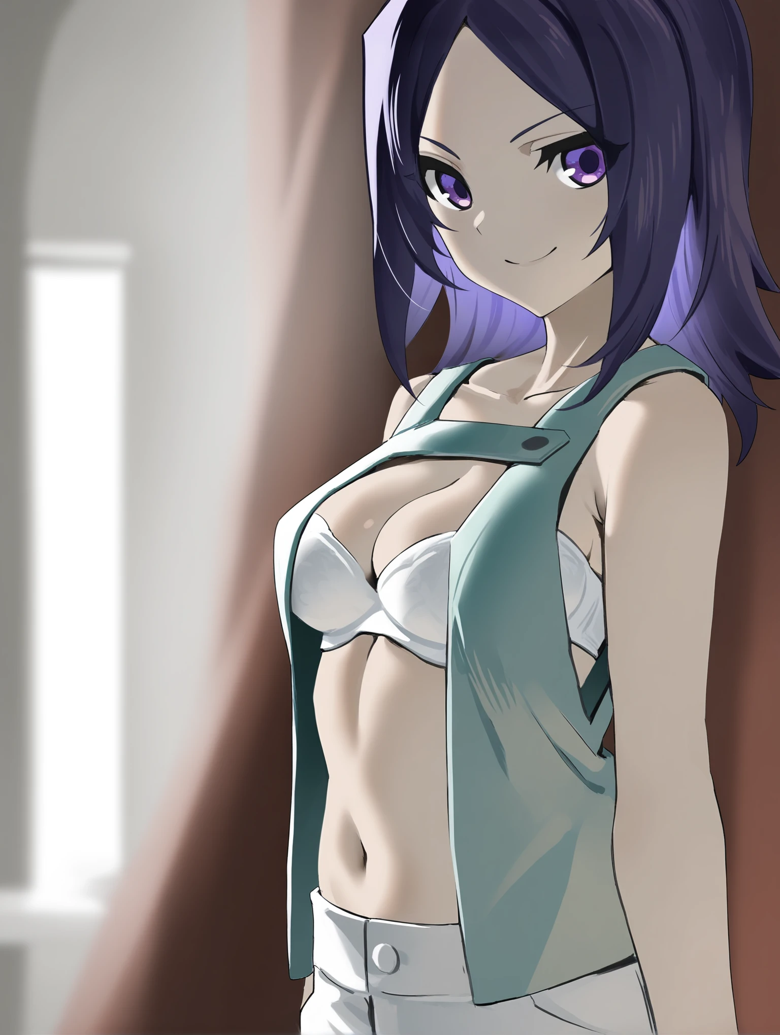 IL_Ai Mikami,1girl,solo,breasts,purple eyes,medium breasts,purple hair,parted bangs