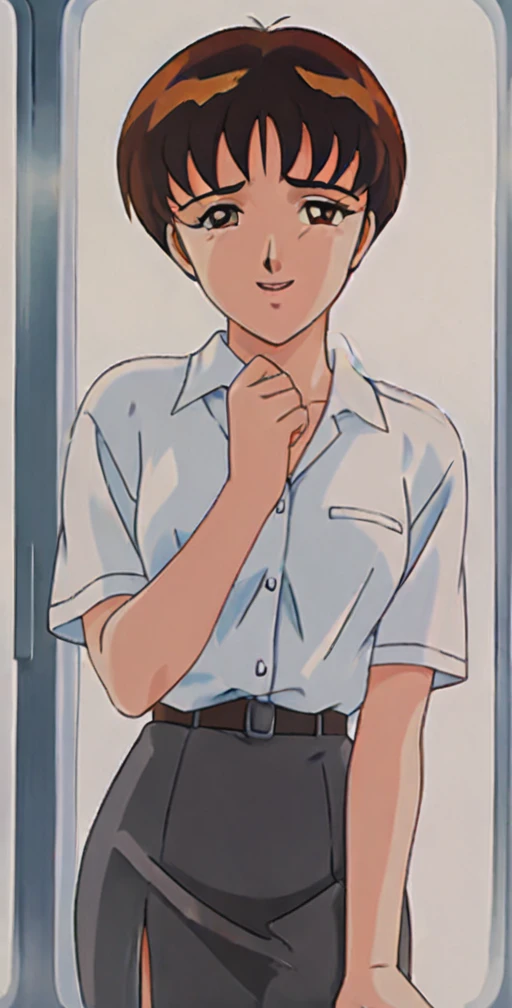 anime coloring <lora:Katori Yoko - Kindaichi Sonen no Jikenbo v3:0.8>Katori Yoko, 1girl, solo, ,Katori Yoko looking at viewer, smile, short hair, brown hair, brown eyes, retro artstyle, 1990s \(style\),