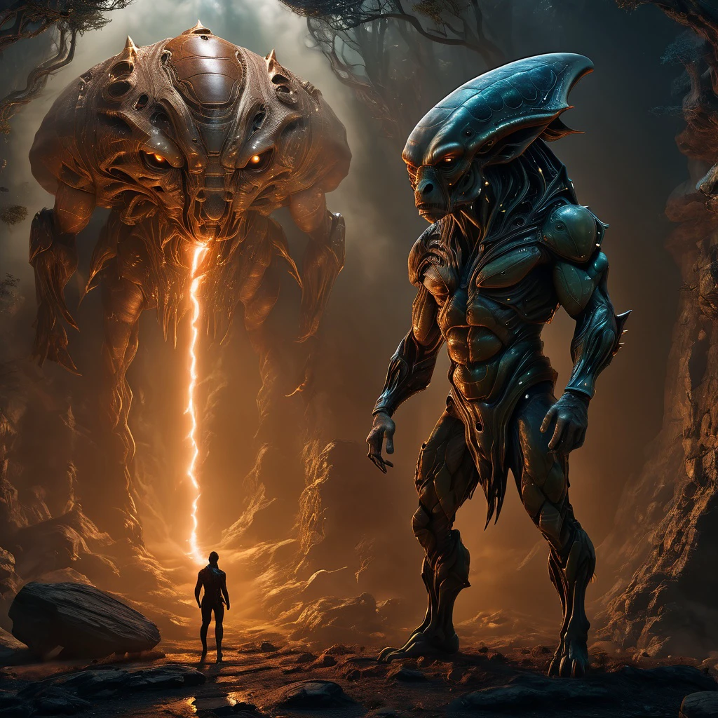 Putting just the lora in the prompt gives pretty good aliens.