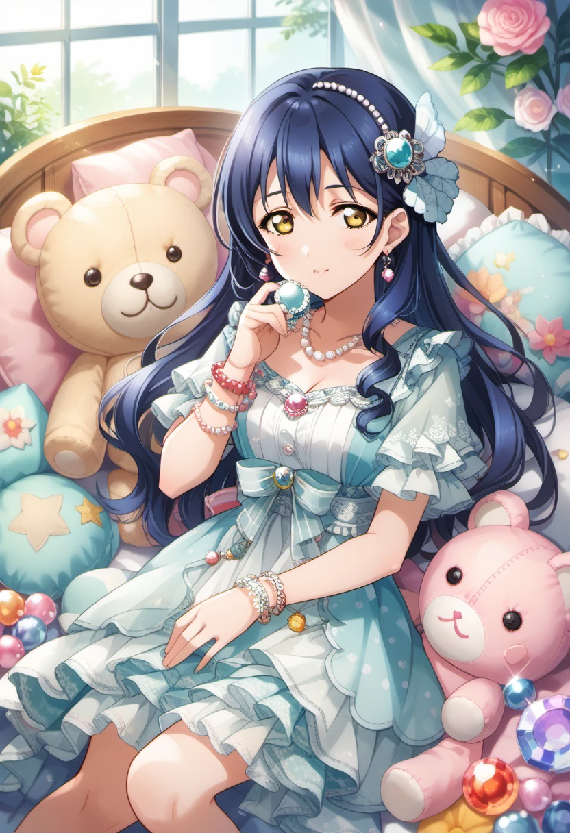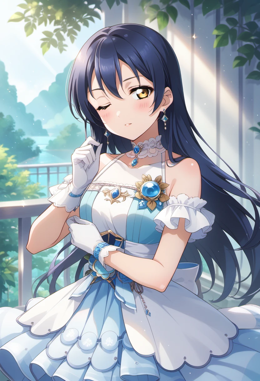 Trigger Words: sonoda umi, long hair, blue hair, yellow eyes