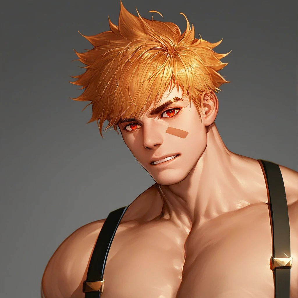 score_9_up, score_8_up, score_7_up, 1man, man focus, brown golden hair, short hair, orange red eyes, handsome, detailed face