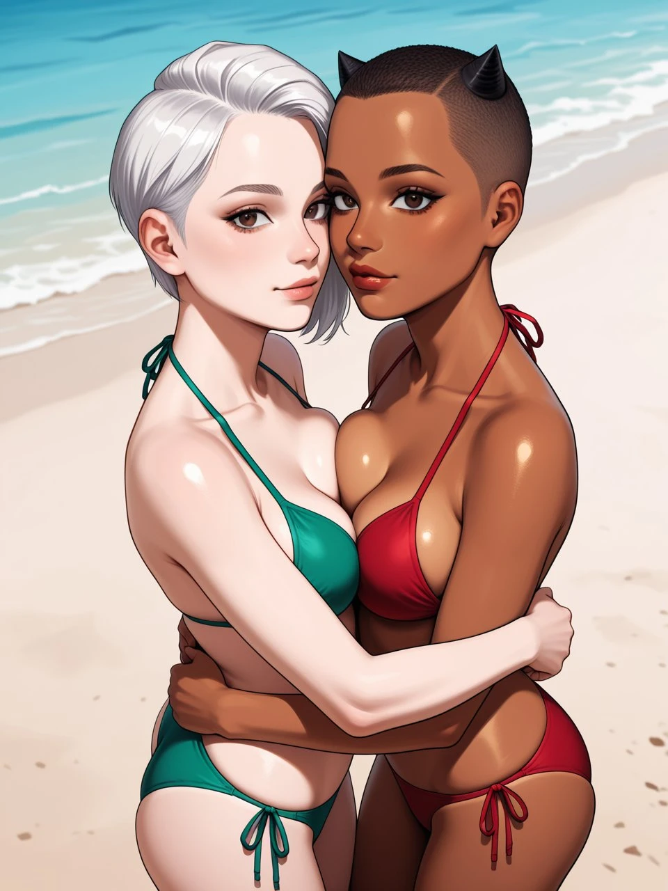 helper tags: dark-skinned female, brown eyes, hairhorns, buzz cut, brown eyes