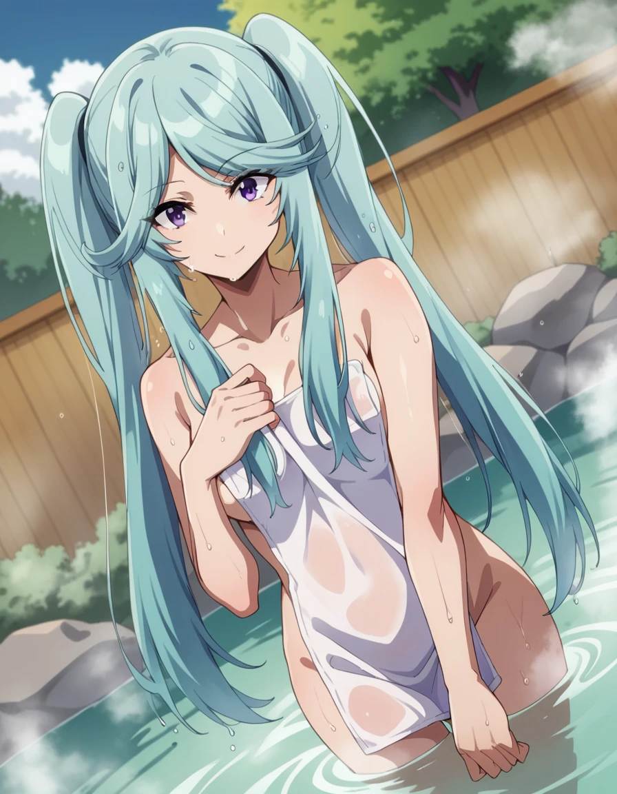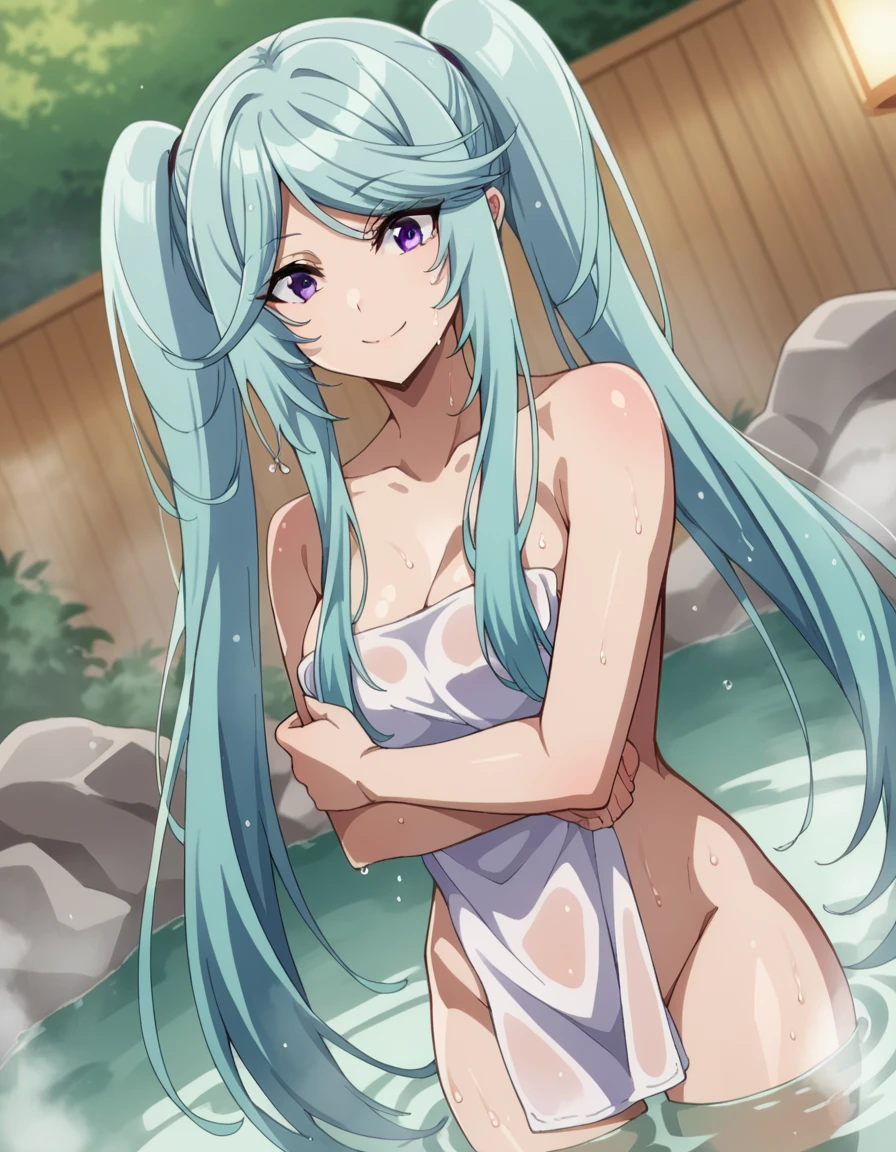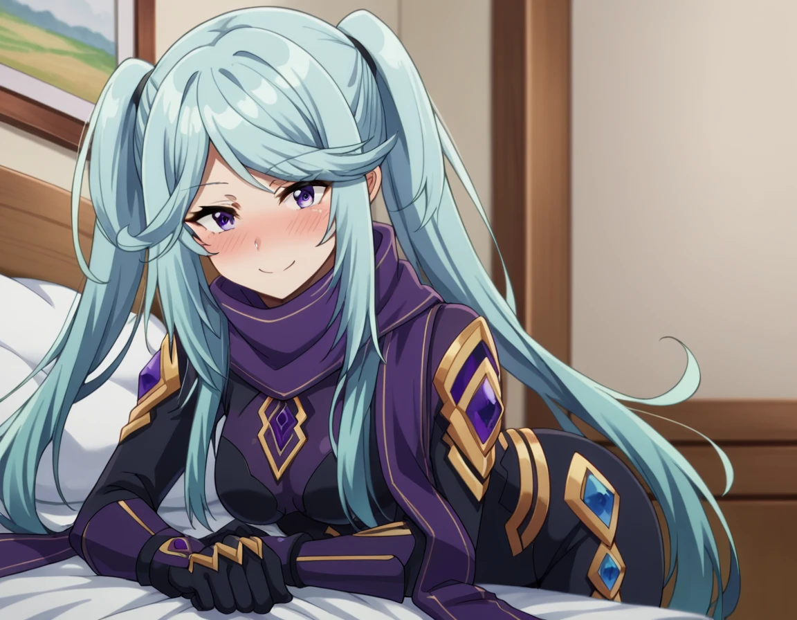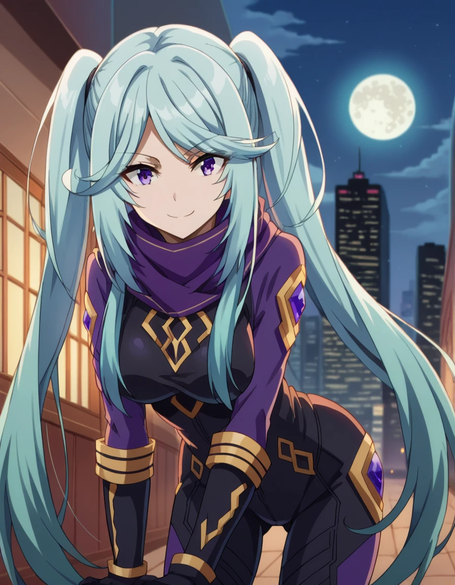 epsilon, long hair, twintails, blue hair, purple eyes, sidelocks,