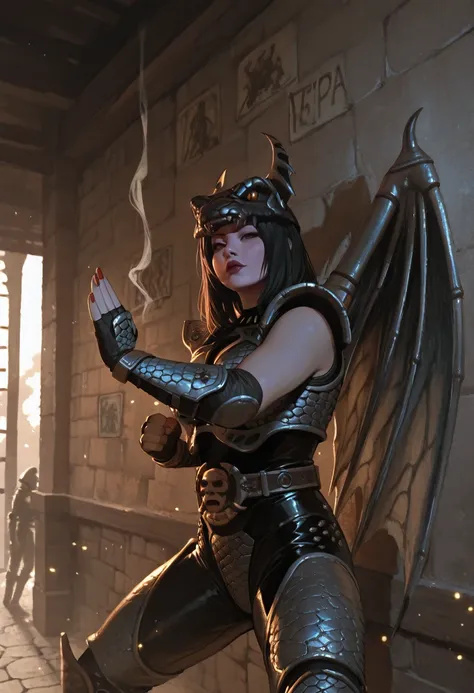 Vypra evil sexy winged female lady, ((winged)).