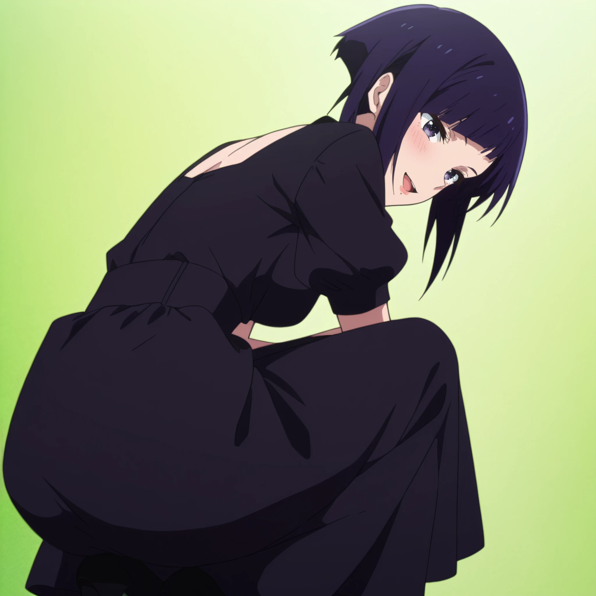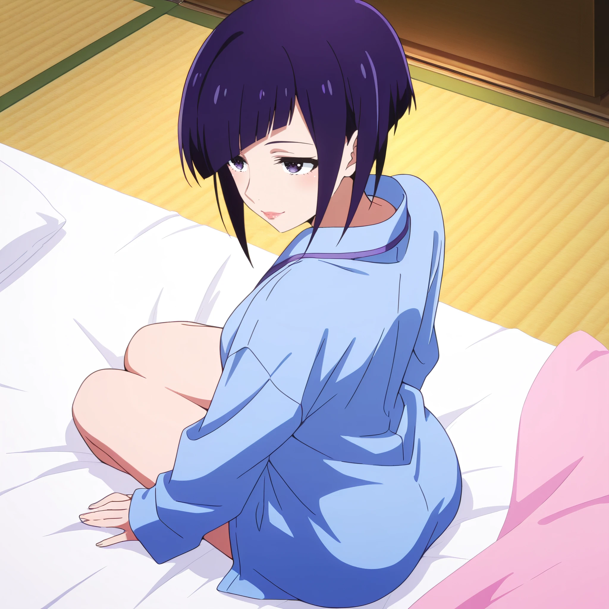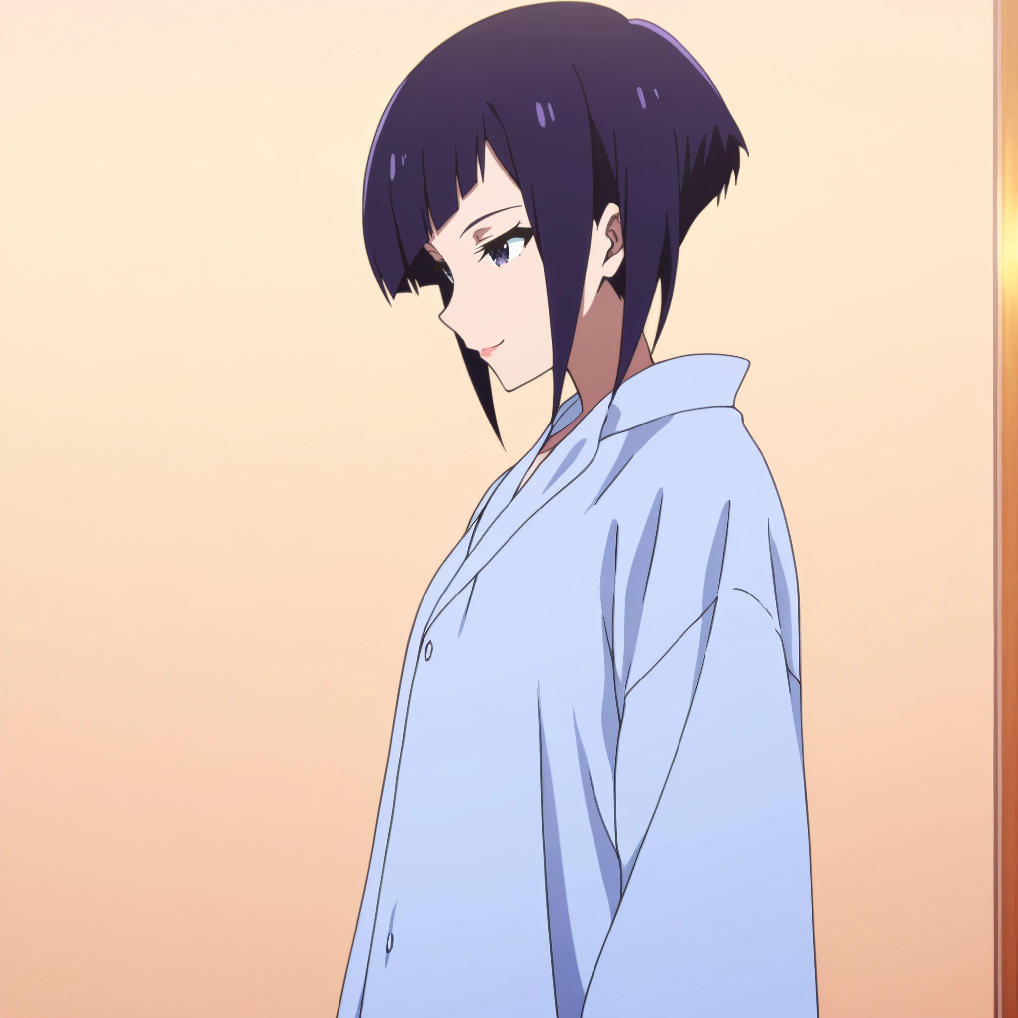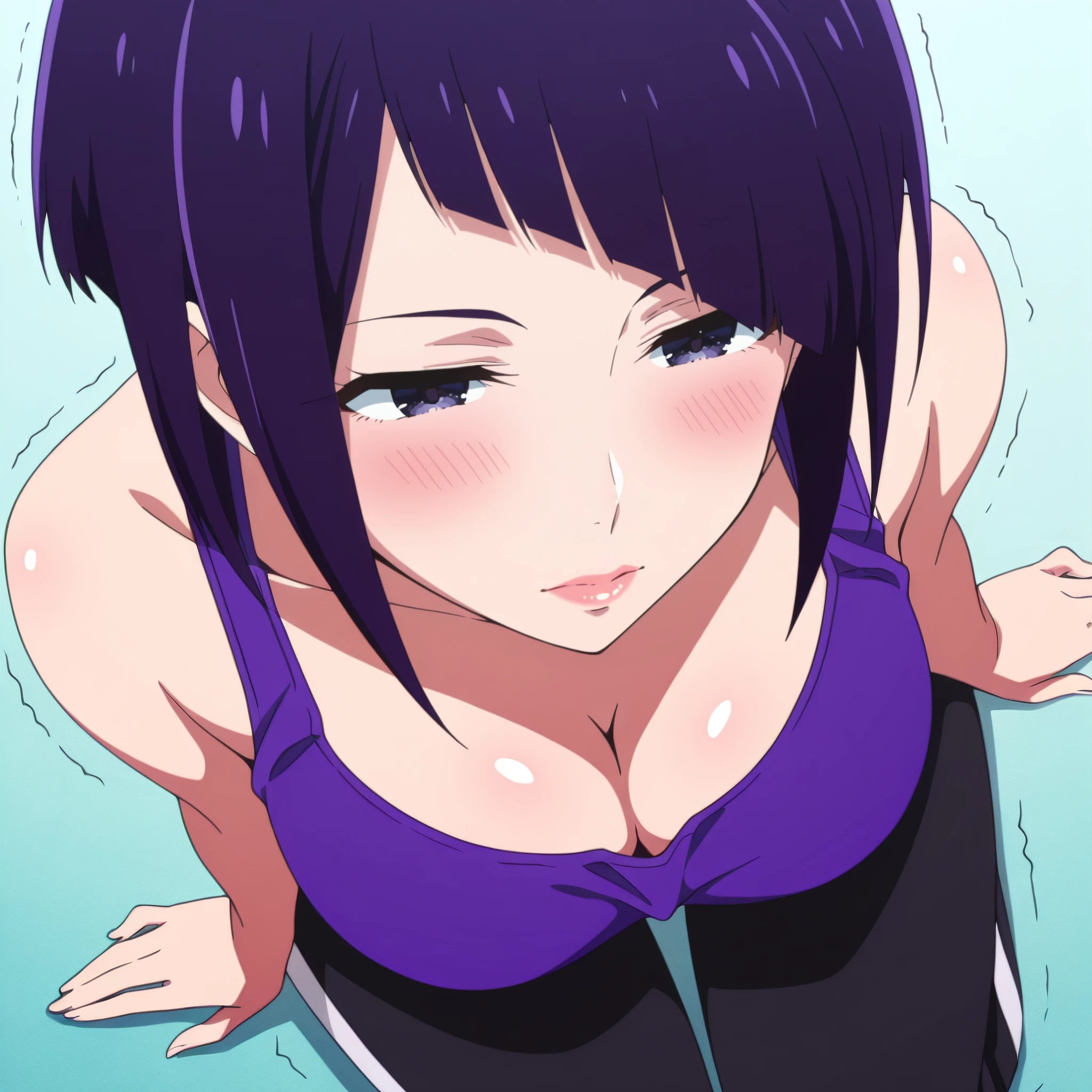 AMWRanko, short hair, bangs, purple eyes, purple hair, blunt bangs,