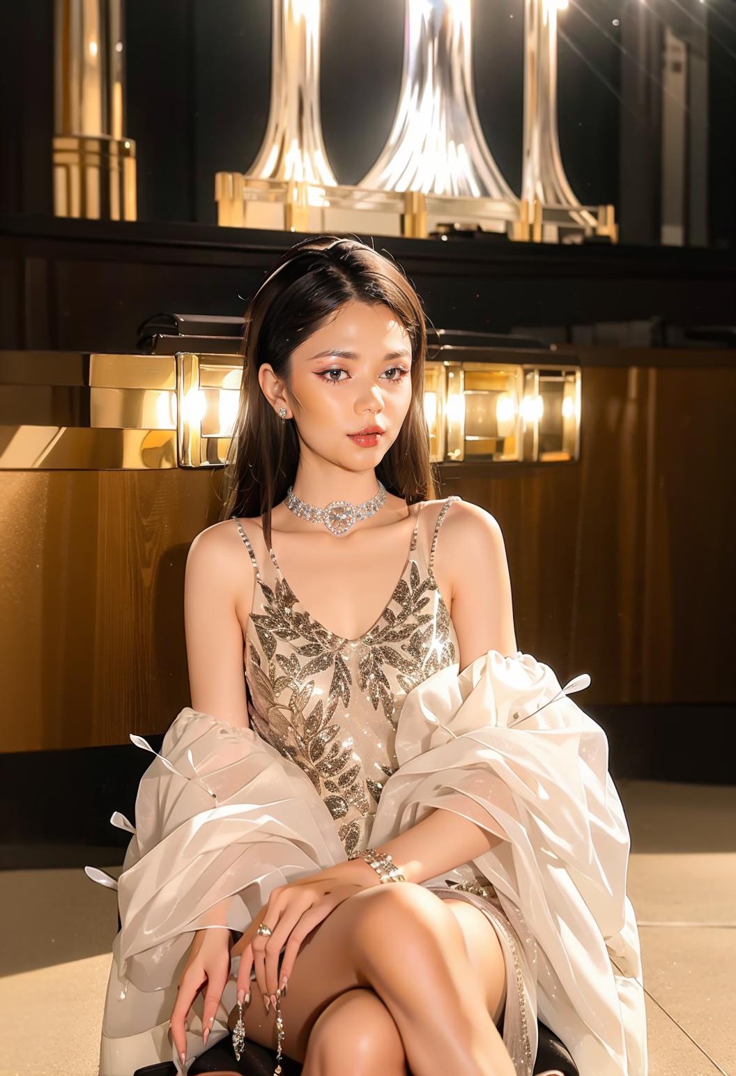 (1girl lying on the bed),dress,jewelry,masterpiece,ultra-realistic,32k,extremely detailed CG unity 8k wallpaper,best quality, black hair, night,, cloud, castle, (version) dress,white dress, solo, long hair, straight hair, hair bow, beautiful eyes, see through