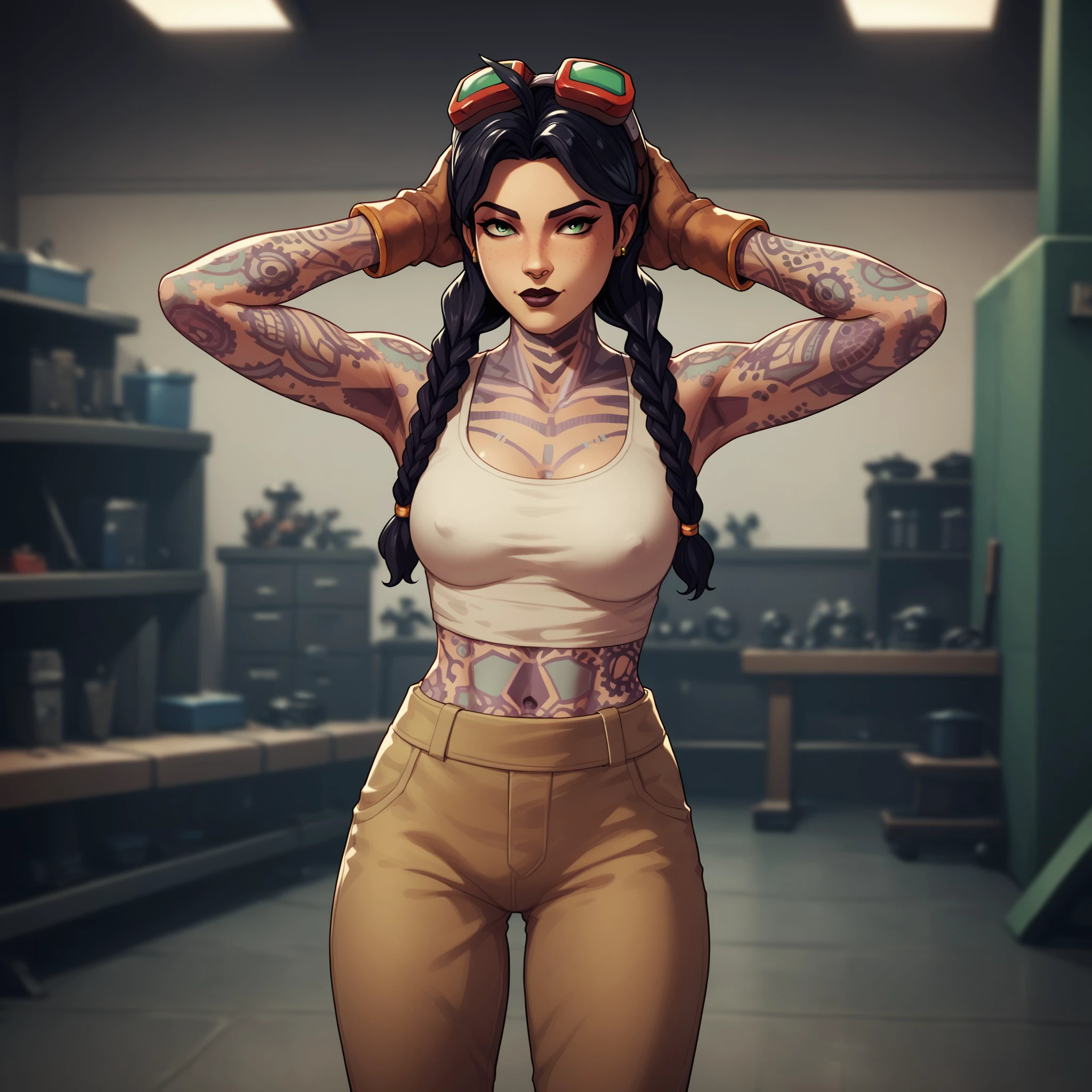 Mechanic outfit - slips, grey shirt, cargo pants.