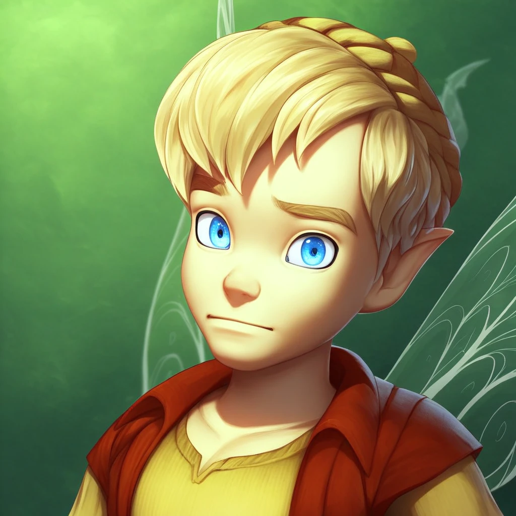 T3rence, blonde hair, fairy, solo, wings, pointy ears, 1boy, fairy wings, short hair, blue eyes,