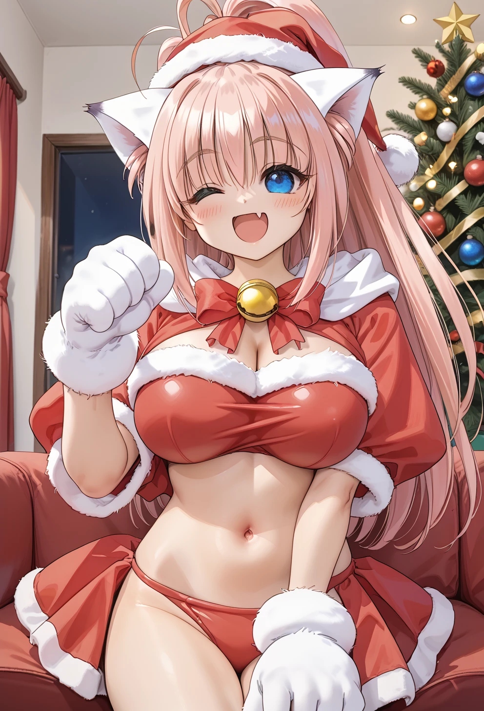 Melody_Sinclair, long wide ponytail, paw gloves, fang, large breasts, five fingers,