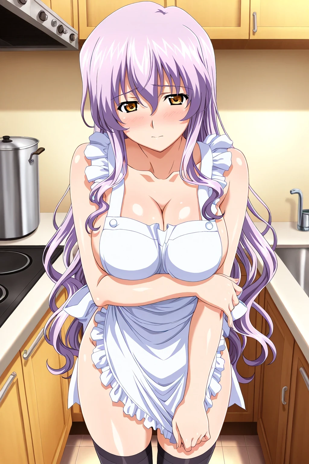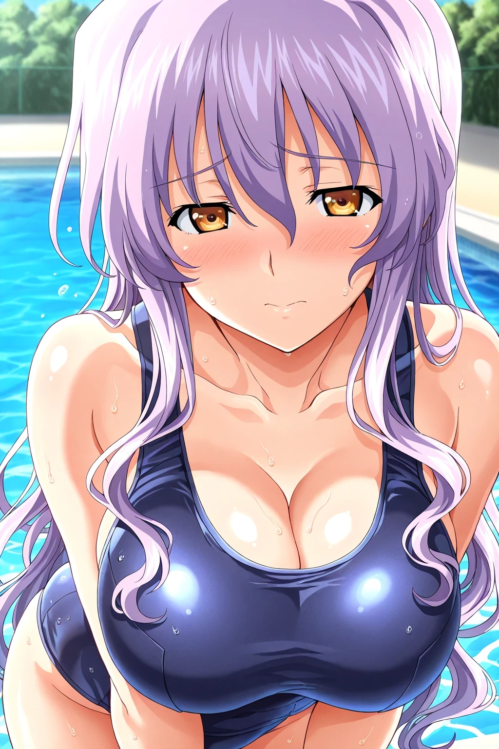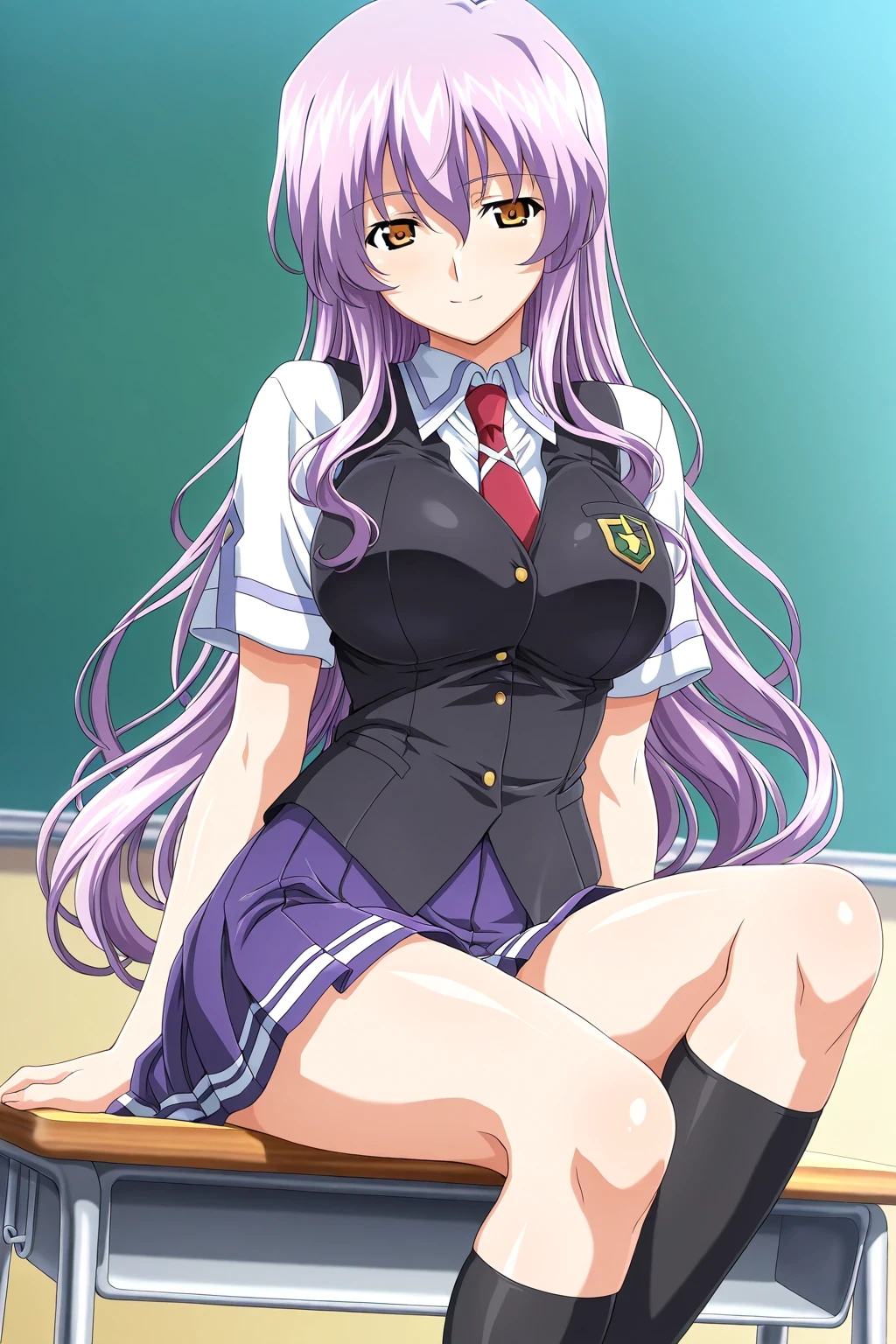 Himuro Suzuka,long hair,wavy hair,white purple hair,sidelocks,Amber eyes,long breasts,