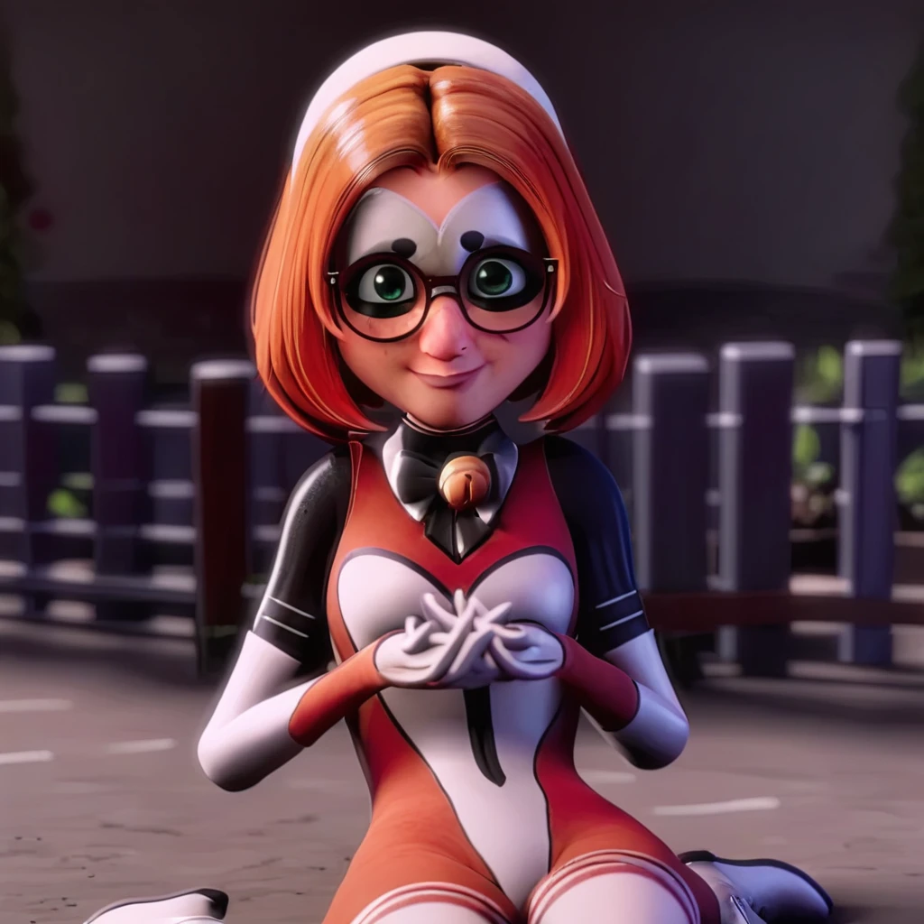 S4br1n4Pr1x, green eyes, glasses, black-framed eyewear, orange hair, short hair, hairband, lips, freckles