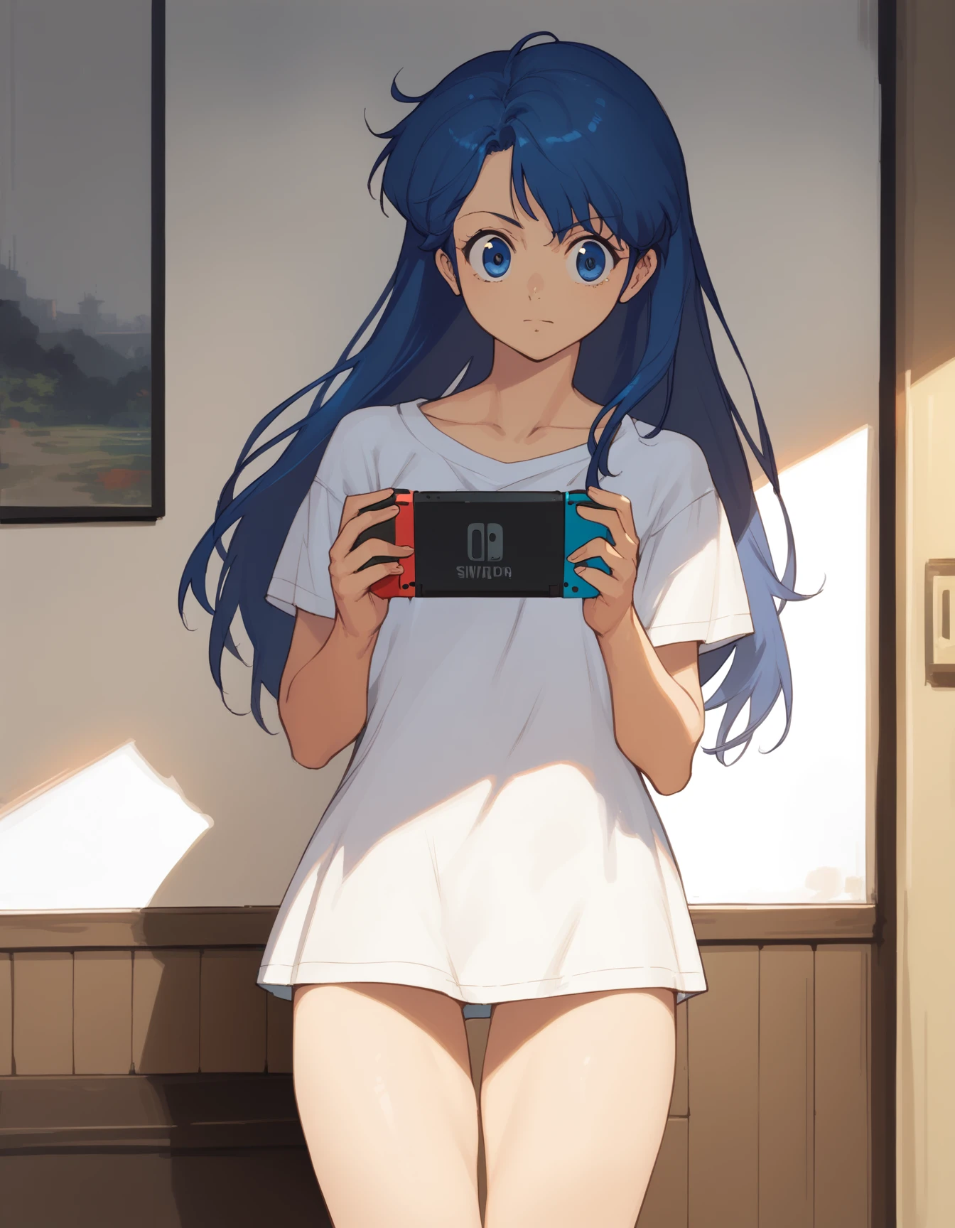 school uniform: asou yuuko, long hair, serafuku, school uniform, long sleeves, white shirt, blue skirt