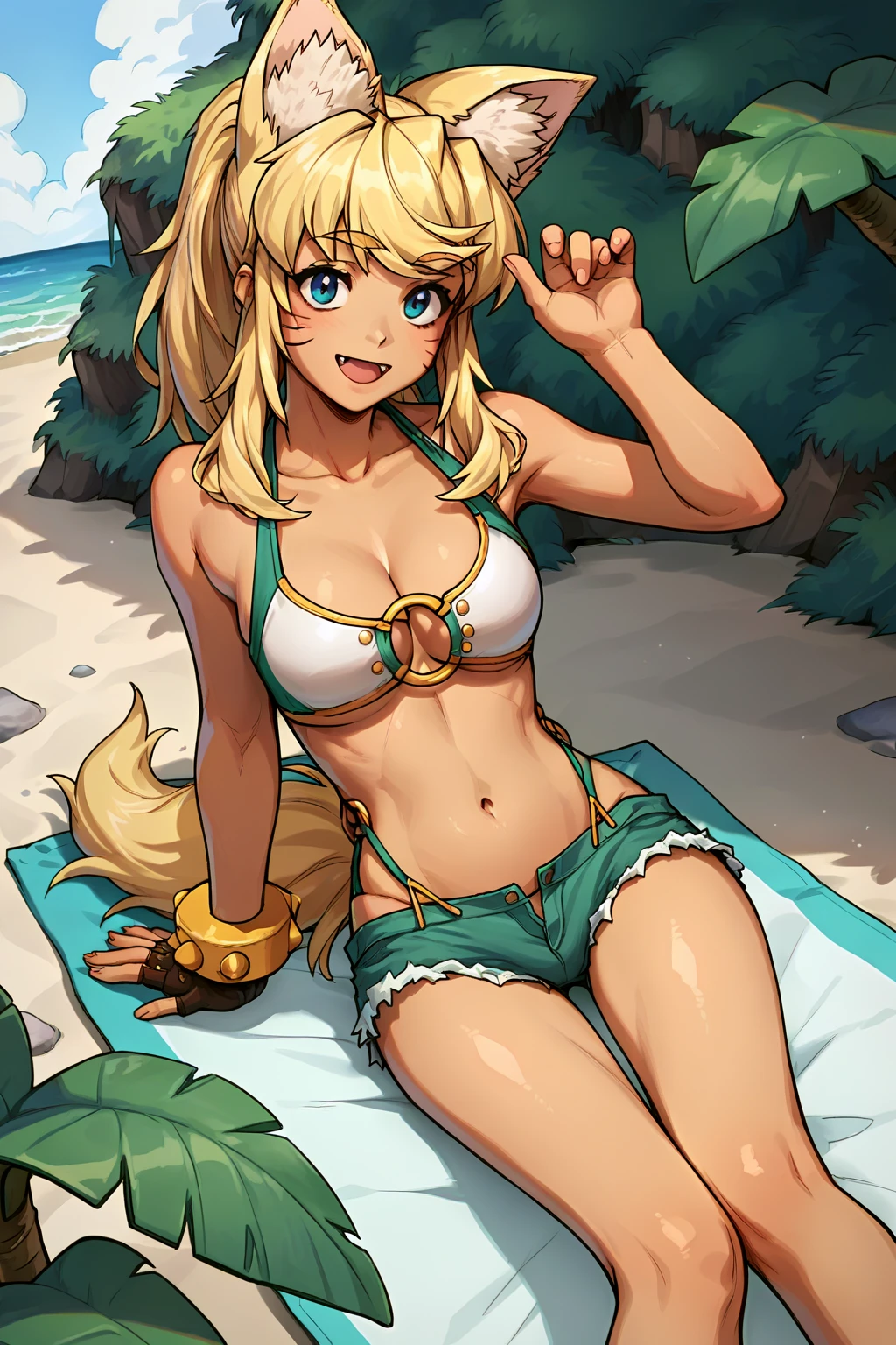 V2: animal ears, tail, beltbra, shorts, thighhighs