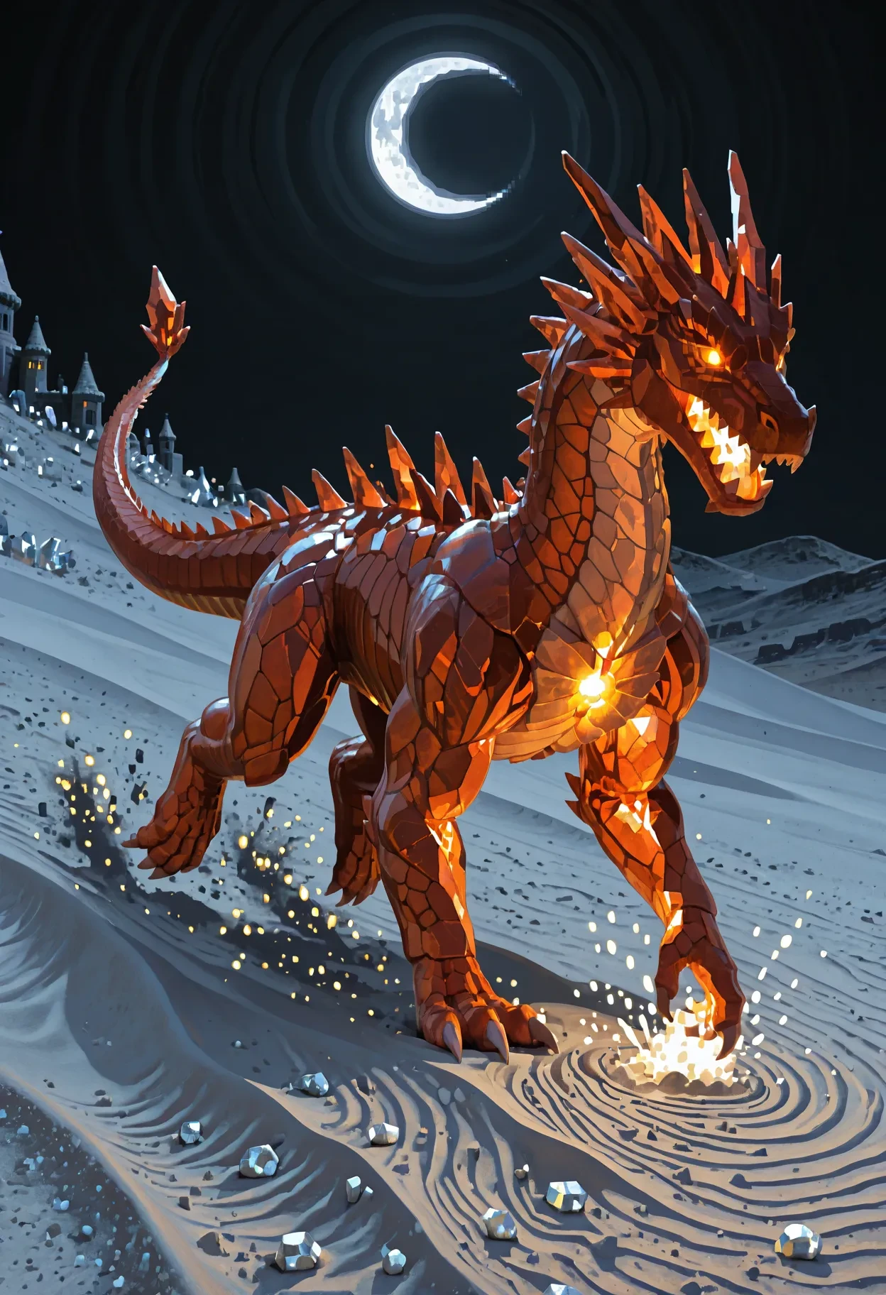 Elemental - Fire: heroes2, pixel art, elemental, fire elemental, from side, three-quarter view, grey body, glowing red, lava, standing, humanoid, full body, stone body, male, cracked lava, looking at viewer, arms by side, cracked body, lava body, inner glow, orange glow, 1boy, solo, mouthless